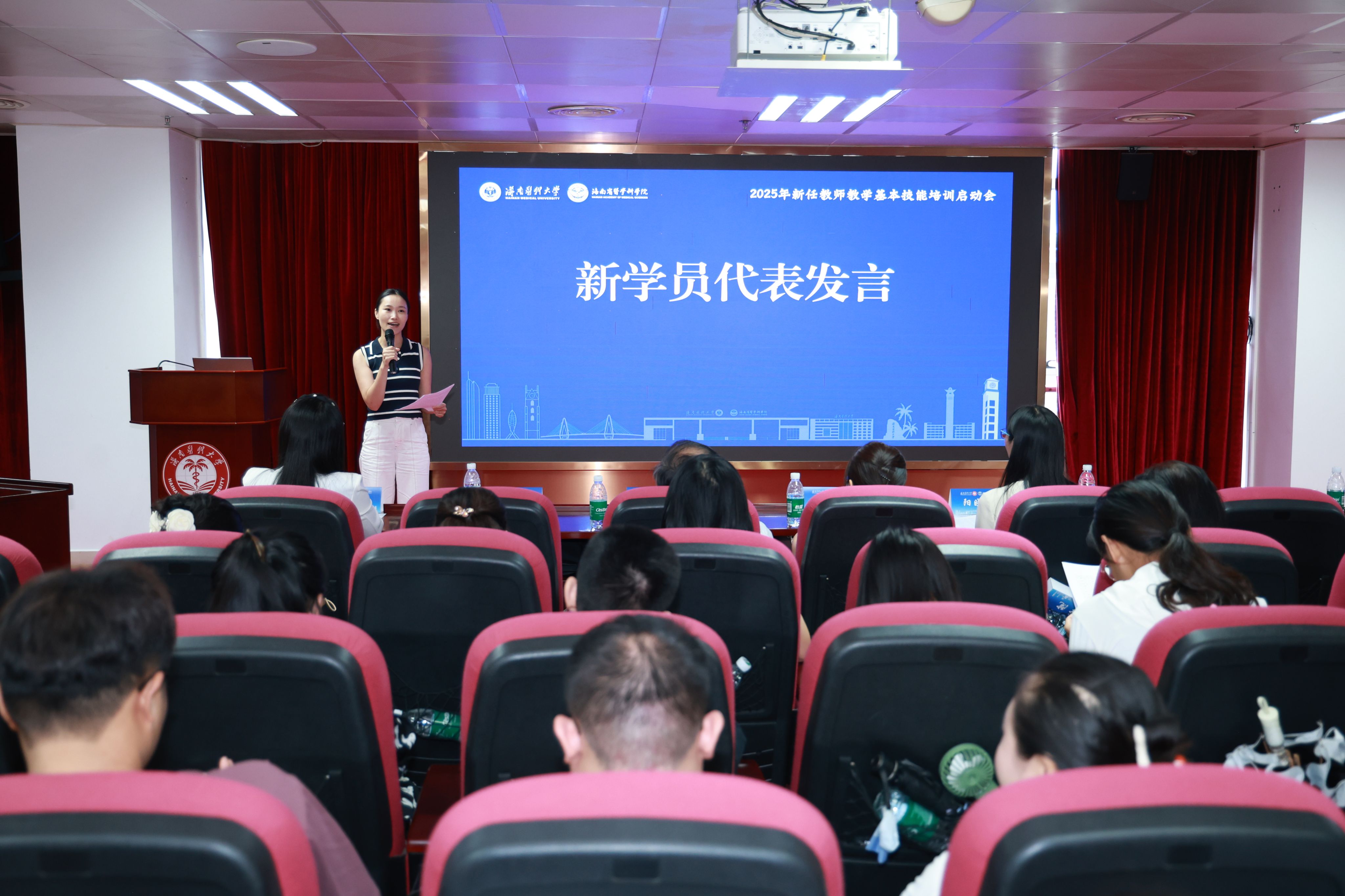 公共卫生学院云青萍老师作为新任教师代表发言,她分享了入职以来的探索与感悟,表达了对尽快提升教学能力的迫切需求,以及通过本次培训夯实教学基础、快速胜任教师角色的热切期待,道出了全体新教师的共同心声。