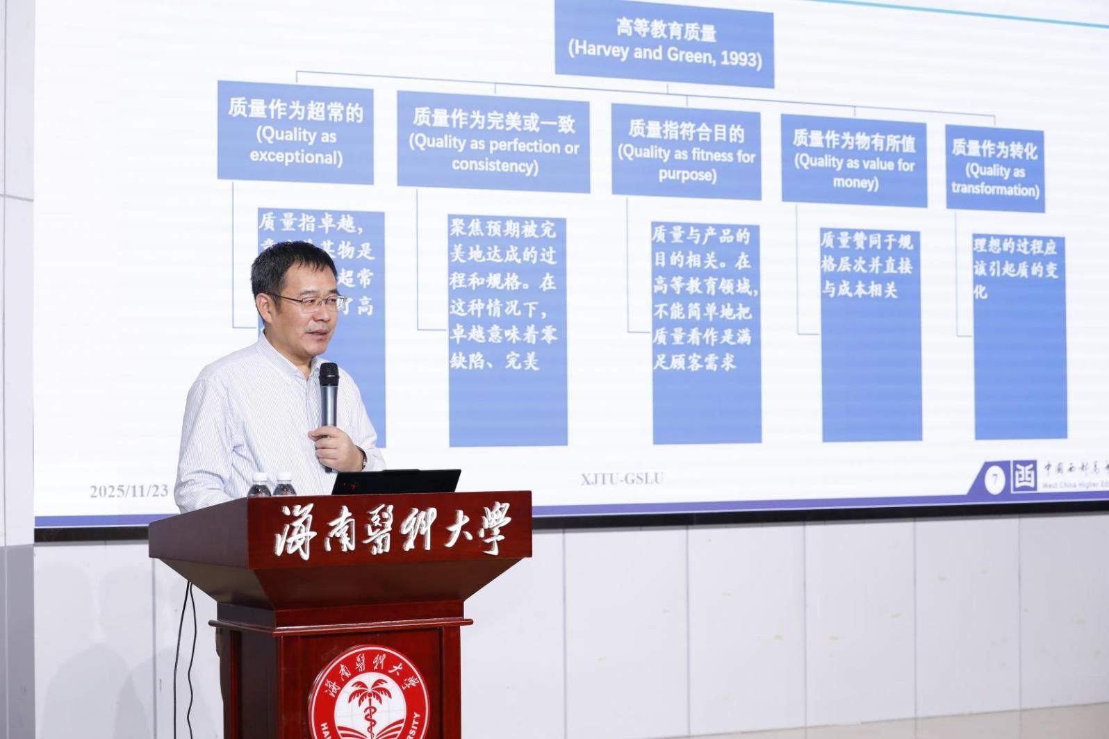 23日上午,陆根书以“教育教学督导:质量评估与整改落实”为主题作专题报告。他紧扣审核评估核心要求与整改提升关键任务,围绕质量文化建设与整改实效深化,深入剖析当前高校审核评估后普遍存在的“重评估轻整改”“整改措施碎片化”“效果跟踪不闭环”等共性问题,系统构建“问题诊断—举措制定—责任落实—效果评估—持续优化”的全链条闭环整改体系。他立足医学类院校教学督导特色与审核评估整改重点,详细拆解整改方案精准设计、整改任务层层压实、整改效果动态跟踪的关键方法,为学校破解审核评估后教学质量整改“落地难、巩固难、提升难”问题提供了科学路径与实操指引,助力学校以整改促提升,全面夯实教育教学质量根基。