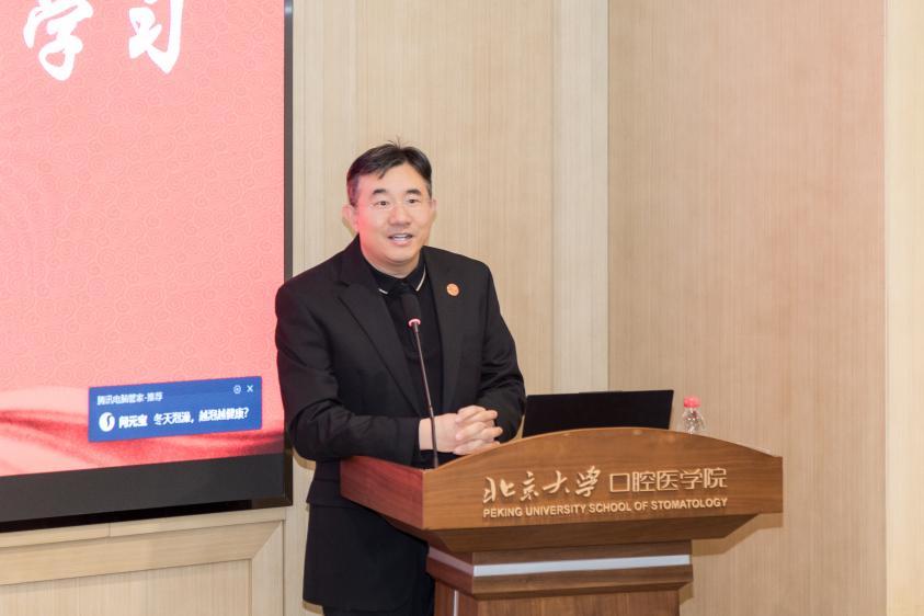 北京大学口腔医学院副院长刘云松作为导师代表发言。他指出导师应在学术与生活上给予学生充分关怀,学生也应主动适应北京快节奏的生活方式,关注心理健康,保持积极状态。北京大学口腔医院口腔颌面外科主任贺洋从口腔颌面外科专业角度指出,该专业要求学生具备扎实的理论基础和较强的临床动手能力,北大口腔将坚持高标准培养模式,确保学生在临床实践与科学研究两大领域接受系统、全面且严格的训练。