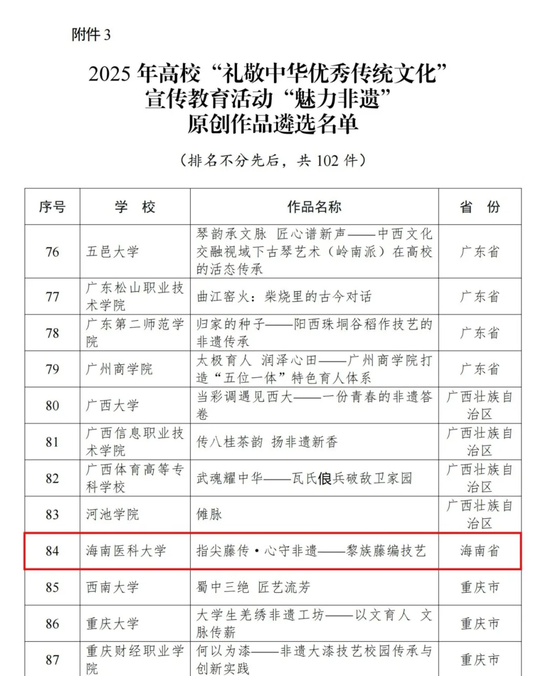该作品的入选,是学校坚持挖掘地域文化资源、推动非遗进校园、促进民族文化传承的缩影,充分体现了学校在传统文化育人方面的积极探索与实践成果。学校高度重视中华优秀传统文化的育人功能与国际传播,学生工作指导委员会办公室(学生工作部)以非遗传承为载体,不断拓展学生思想政治教育路径。一方面,通过建立黎锦织造、藤编技艺等特色五育实践基地,聘请非遗传承人走进校园,引导学生在动手操作中感悟工匠精神、增强文化认同,将家国情怀内化为服务自贸港的责任担当;另一方面,积极探索“走出去”路径,组织学生赴海外开展研学与文化交流,在异国舞台上现场展示黎锦编织、藤竹编等非物质文化遗产技艺,讲述中国故事,提升学生文化自信,成为中华优秀传统文化的传播使者。
