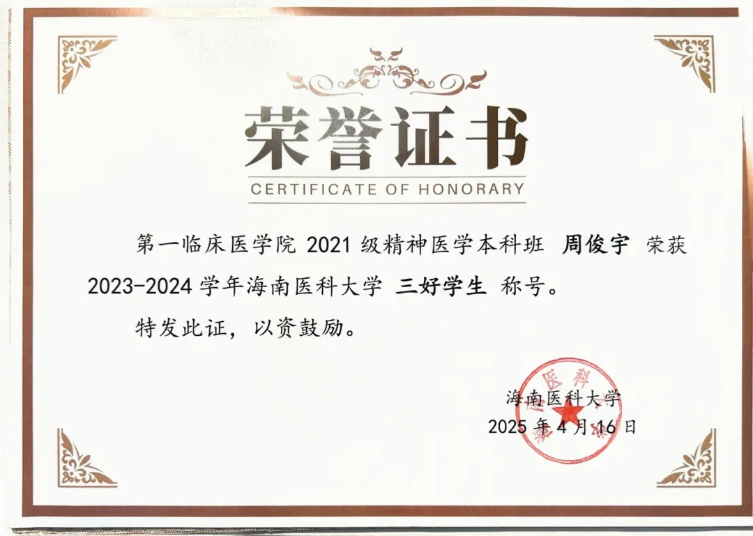 于他而言,分数之外,更重要的是构建起系统而贯通的知识体系。精神医学作为一门融合基础医学、临床实践与心理科学的学科,需要的正是这种跨学科的整合能力——而这,也在持续积累中逐渐成形,也为他后续科研探索奠定了坚实基础。