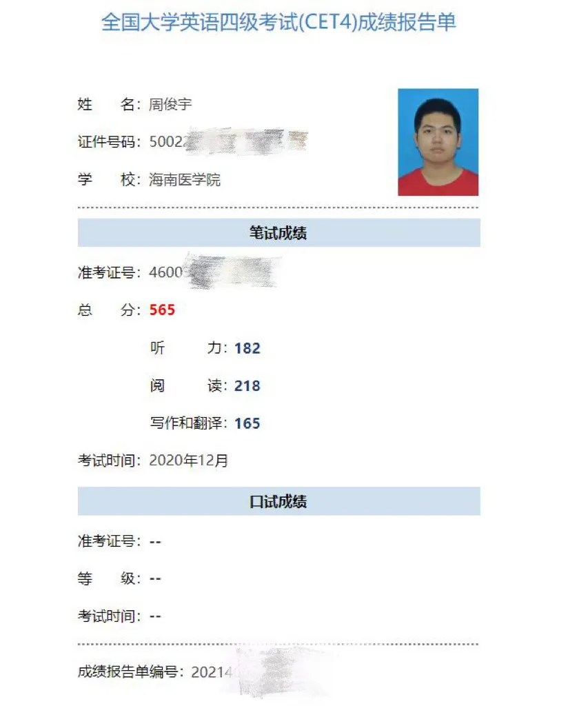 四六级成绩单