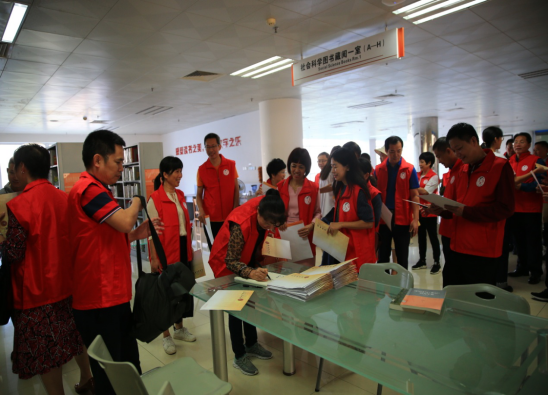 图书馆前合影留念