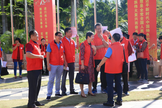 随后,校友们走进洒满青春梦想的美丽校园,在王鹏老师引导下一同游览了医学卷轴、“一带一路”纪念碑、凤凰广场、医学卷轴及其它景点。校友们一路参观,一路回忆,提起班级上的光辉往事,仍心潮澎湃,激动不已。“鹰队,是班级组成的足球队,那些年,劈荆斩棘,过五关斩六将,在学校是第一的,在海南省高校里也是赫赫有名的”,校友们热情澎湃、满脸自豪、满腔自信……深秋的阳光透过大树枝干、叶子,洒在校友们的身上,暖洋洋的,枝条上的小鸟们,似乎受到感染,不时张望过来,发出愉快的鸣叫……