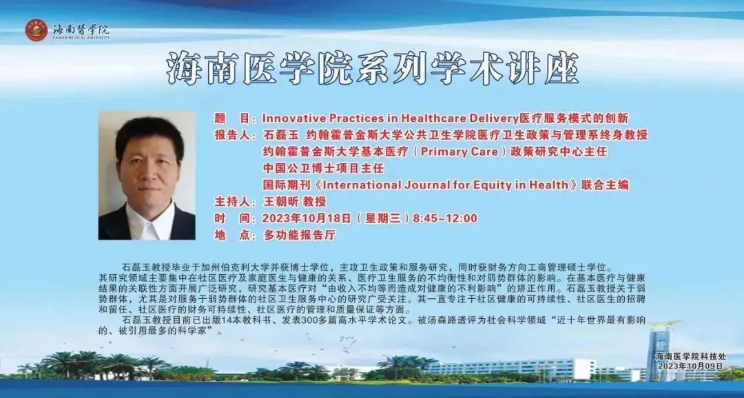 美国约翰霍普金斯大学石磊玉教授来校讲座