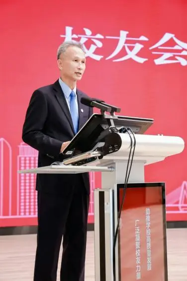 大会在庄严的国歌声中正式拉开帷幕。校友会第二届理事会会长韩英伟率先发表了热情洋溢的讲话,他深情回顾了母校的发展历程,阐述了学校在办学宗旨和校训精神引领下取得的累累硕果,尤其着重强调了学校更名这一里程碑事件的重大意义。韩会长对校友们寄予了殷切期望,希望大家把校友会当作温暖的家园,常回母校看看,积极为母校回馈力量,勇于担当社会责任,为校友会工作的开展指明了清晰方向。