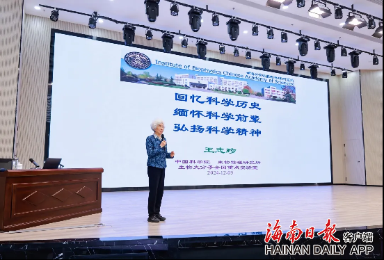 王志珍以“回忆科学历史 缅怀科学前辈 弘扬科学精神”为题,从我国在20世纪60年代科研条件极其困难的情况下攻坚克难、人工全合成结晶牛胰岛素的科研故事切入,向师生们讲述了邹承鲁、王应睐等老一辈科学家们的奋斗故事和家国情怀。