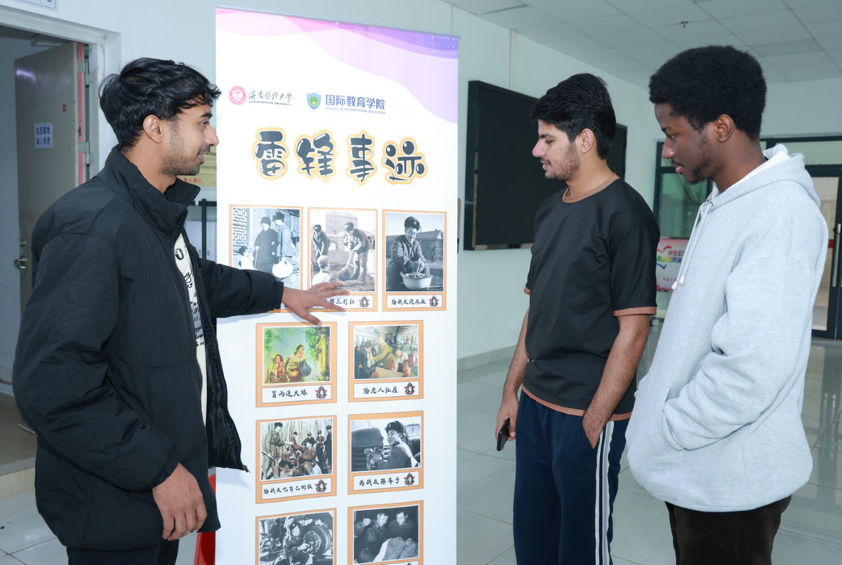 活动中,一场别开生面的文化交流让现场气氛更加热烈。来自巴基斯坦的刘畅同学分享了自己的感悟:“我之前也听说过“雷锋”这个名字,但是没有深入了解过。今天听了老师的讲述,我感觉雷锋是一个了不起的人,他经常帮助他的同事、朋友、老人、小孩,他特别善良,特别爱自己的祖国和人民。我也要成为像雷锋这样的人,我觉得,只要你愿意做好事,愿意帮助你身边的人,爱自己的国家和人民,你也可以是雷锋!学习雷锋,好榜样!”他的发言赢得了热烈的掌声。随后,各国学生纷纷讲述起自己家乡的公益故事:巴基斯坦同学介绍了他们国家的埃德希基金会创始人、人道主义者、慈善家和苦行者阿卜杜勒·萨塔尔·埃德希的慈善故事;印度同学提及了“零卢比诊所”创始人比拉尔医生的善举;印度尼西亚同学分享了女性解放先驱、民族主义者和教育家拉登·阿珍·卡蒂妮的故事……不同文化背景下的道德模范故事,与雷锋精神交相辉映,诠释着人类共同的价值追求。