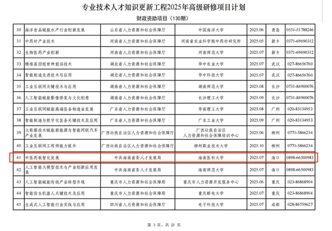 近日,人力资源社会保障部办公厅发布了《人力资源社会保障部办公厅关于印发专业技术人才知识更新工程2025年高级研修项目计划的通知》(人社厅函〔2025〕27号),taptap点点官网全科医学与继续教育学院以国家级专业技术人才继续教育基地为依托,牵头组织申报的“中医药数智化发展”高级研修班项目成功入选。