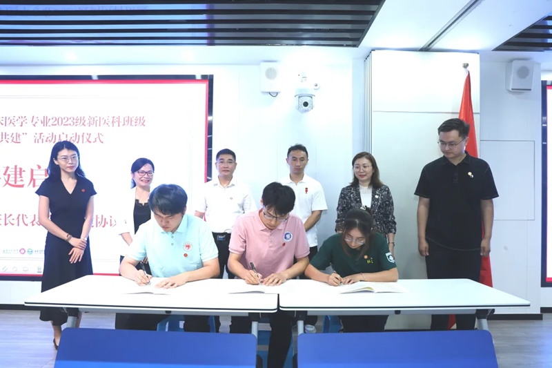 三位2023级新医科班的班长签署共建协议