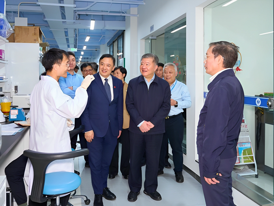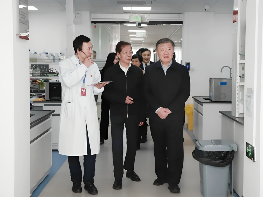 陈竺一行走访国家卫健委热带病防治重点实验室。