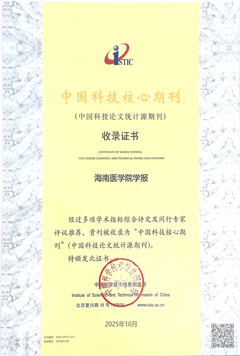 此次再度入选“中国科技核心期刊”,是对学报过去工作的肯定,更是对学报未来发展的鞭策。学报将以此为新的起点,继续秉承严谨求实的科学精神和精益求精的工匠精神,努力将学报打造成为展示我国高水平医学科研成果、促进区域乃至国际学术交流、服务健康中国和海南自贸港建设的重要学术平台,力争在服务学校学科建设、促进国内外学术交流方面发挥更加重要的作用。