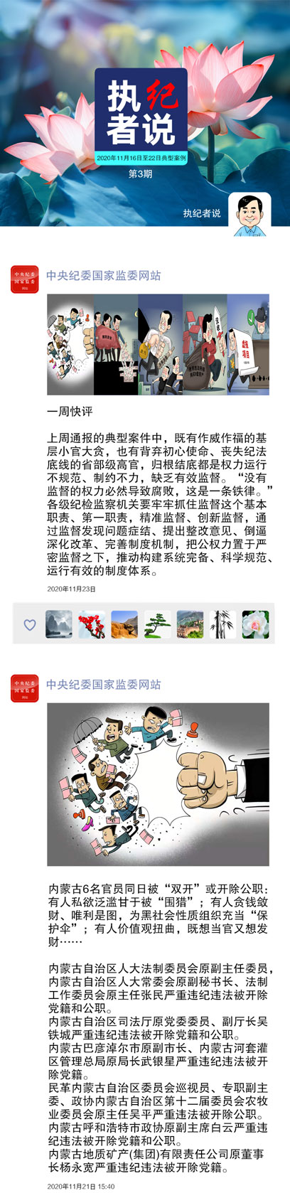 执纪者说 | 第三期 2020年11月16日至22日典型案例