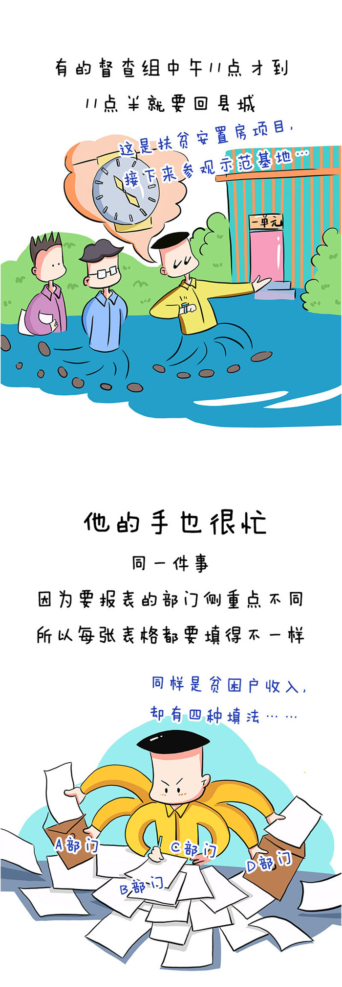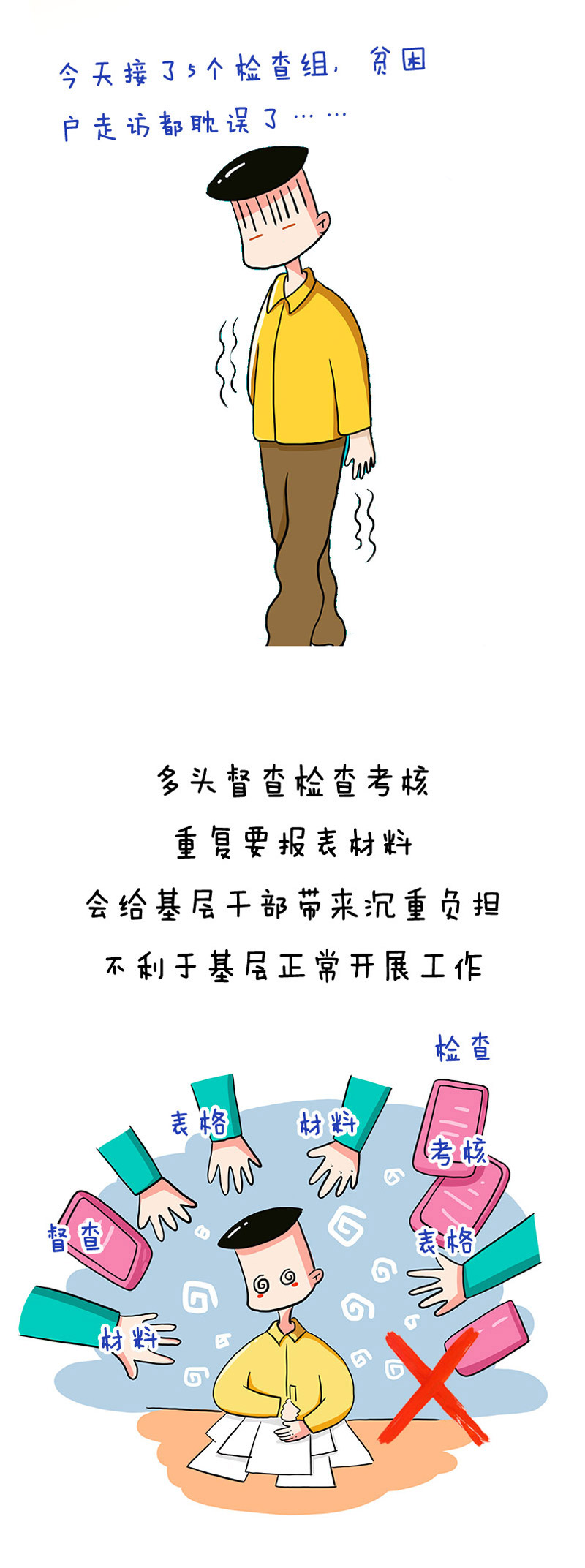 漫画说纪丨多头督查检查考核重复要报表材料不可以