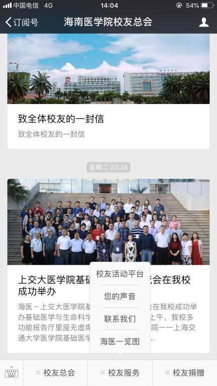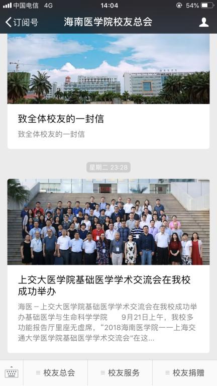1.打开海南医学院校友总会公众号