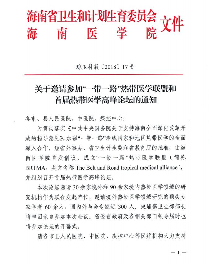 一带一路热带医学联盟省卫计委与海南医学院联合发文