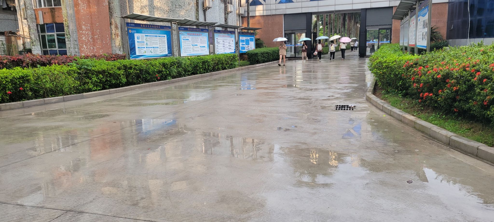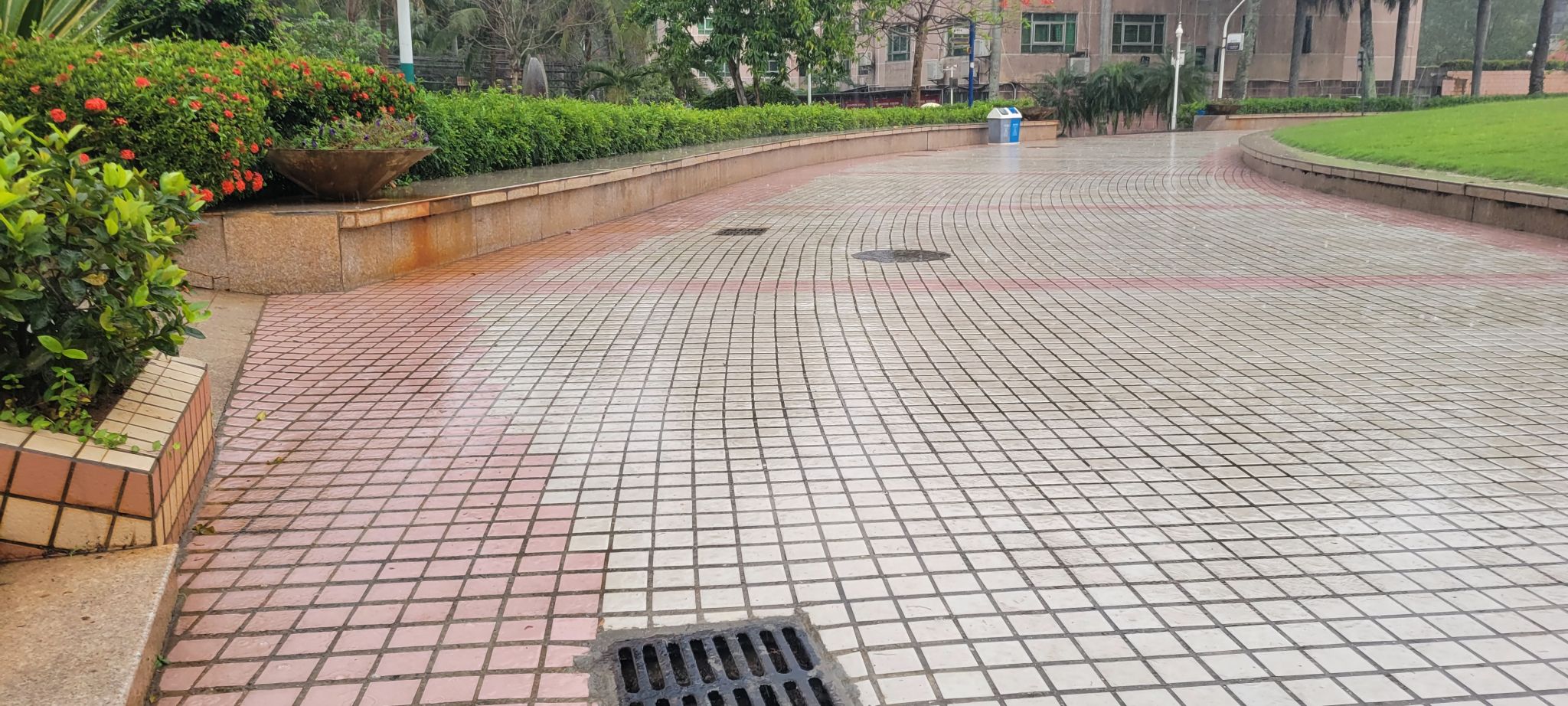 因海南地处亚热带地区,雨水较多,院内多处积水,影响师生生活学习。为彻底解决这一问题,基建处积极勘察院内地形,开展一系列积水改造工程,包括综合楼积水点改造工程、医学广场修复改造工程、一二期周边环境改造工程,确保雨季到来之前排水渠道通畅。