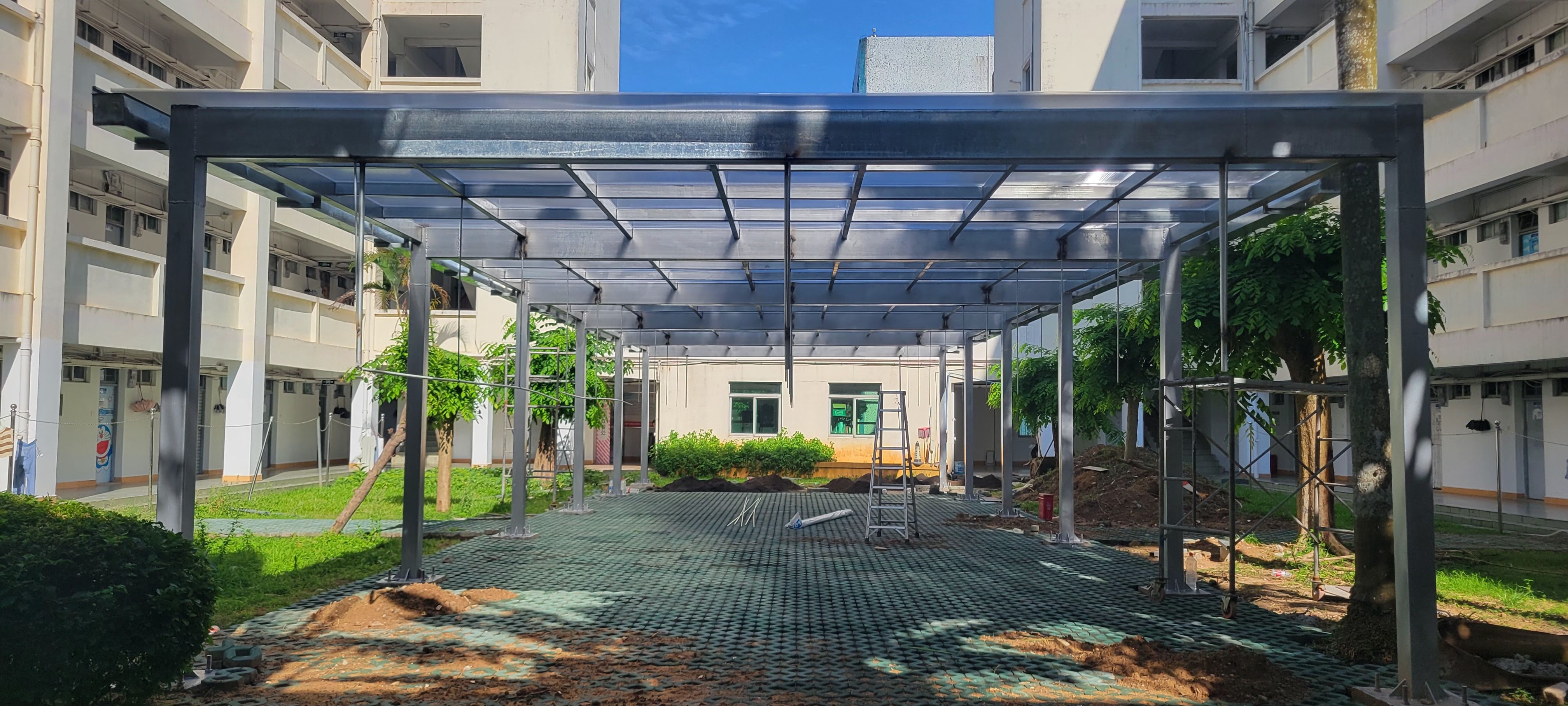 校内部分区域学生居住密度较大,低楼层阳光照射不足、衣被晾晒难,许多学生在楼前树上系绳子或摆放晾衣竿来晾晒衣被,不仅影响校区整体形象,而且存在一定的安全隐患。在充分征询学生意见后,根据学生实际需求情况,因地制宜选择点位,在校内公寓楼公共区域加装了晾衣架,不仅解决了学生晾晒难问题,同时又规范了学生的晾晒行为,为学生提供了一个干净舒适、整洁便利的居住环境。