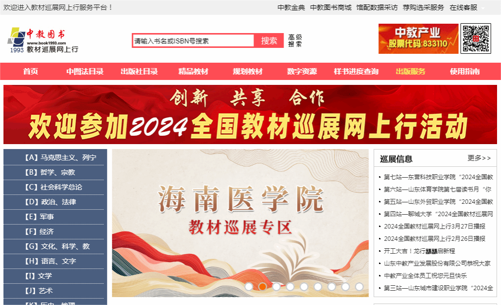 为全面落实教育部颁布的《普通高等学校教材管理办法》,进一步规范学校教材选用工作,确保选用的教材符合本校教育教学需要,海南医学院特举办“2024全国教材巡展网上行”线上巡展活动。此次活动已于4月30日正式启动,并将提供全年常态化服务,为学校提供便捷、高效的教材遴选渠道,助力学校教学质量的提升。