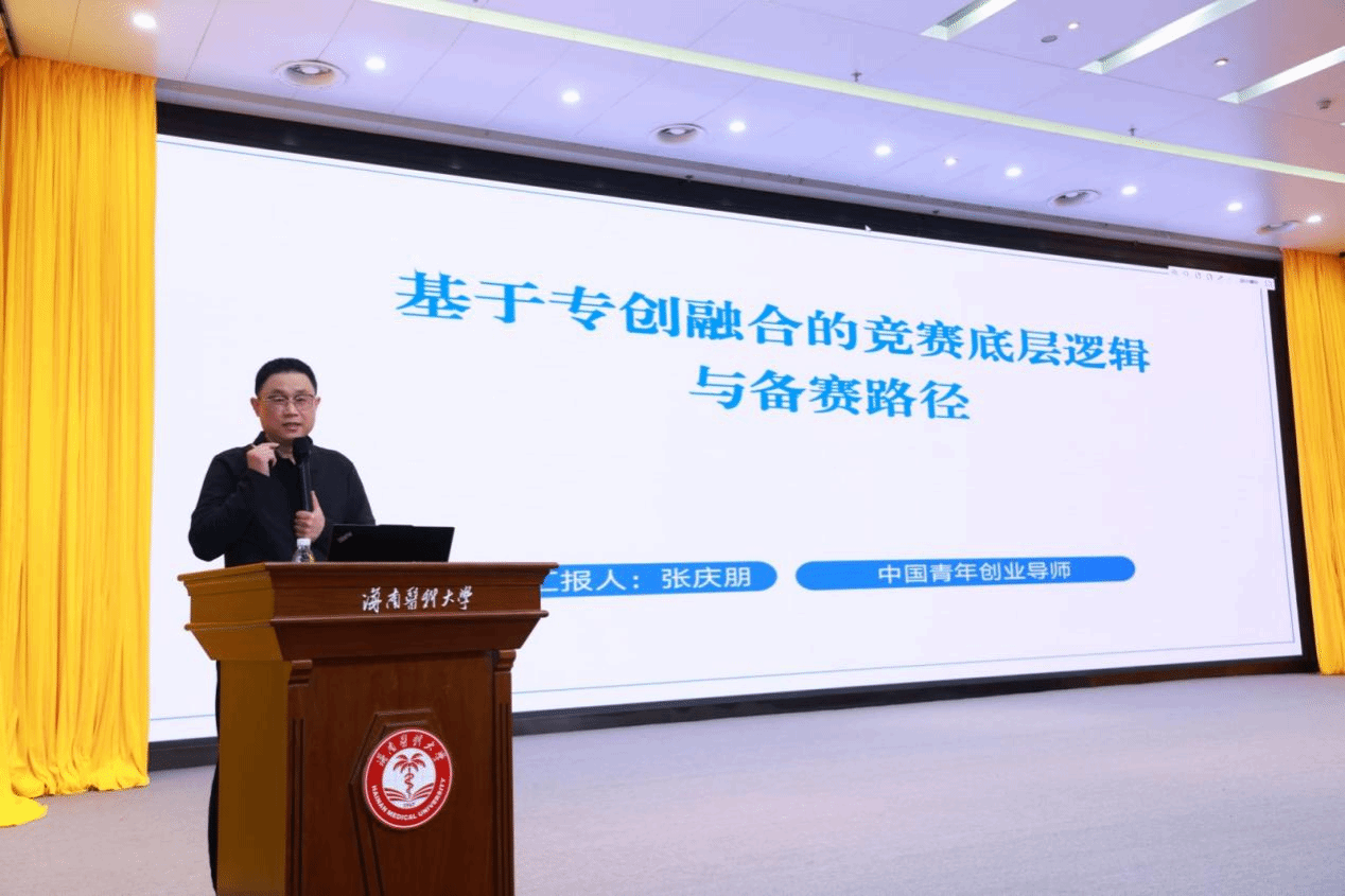 张庆朋老师以“基于专创融合的竞赛底层逻辑与备赛路径”为主题,结合自身多年指导经验,为师生带来了一场内容丰富、实用性强的讲座。他首先从创新性、实用性、市场潜力及团队综合能力等维度,深入解析了创新大赛的评审核心要素,为学生备赛提供了清晰的方向指引。随后,他详细讲解了备赛的全流程,重点强调了团队组建、资源整合和时间管理等关键环节,帮助学生系统掌握备赛要点。此外,张老师通过多个国金获奖案例,从不同模块多维度深入剖析了这些项目的成功经验,进一步增强了师生对备赛的信心。