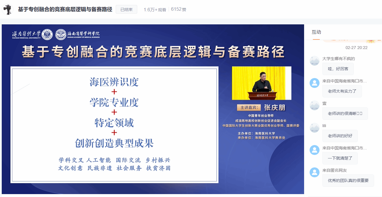 2025年2月27日晚,教务处在国际报告厅成功举办了“基于专创融合的竞赛底层逻辑与备赛路径”专题讲座。本次讲座旨在帮助学生深入理解创新大赛的参赛要求和备赛要点,激发学生参与大赛的热情。活动吸引了八百多名师生现场参与,线上学习人次达1.6万,充分展现了taptap点点师生对创新创业的高度热情。