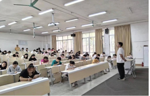 考试当天,教务处处长李其富,副处徐芳芳来到考场,重点就考试组织、考场秩序、评卷管理等工作进行检查。