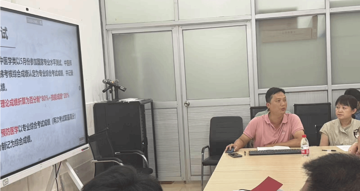 随后,考务科负责人李玉龙从近三年临床医学专业(本科)水平测试以及中医师岗位胜任力第二阶梯考核成绩分析、2021级五年制普通本科专业综合考试工作安排和临床医学专业(本科)水平测试、中医师岗位胜任力第二阶梯实施方案等方面作详细汇报。