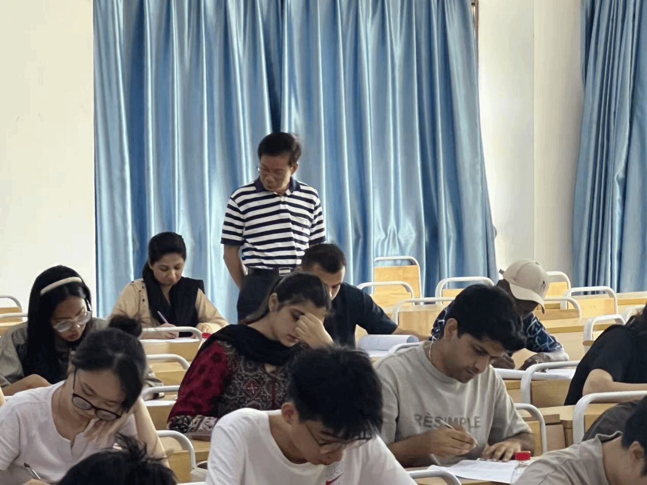 在留学生考试的考场中,陈国强校长驻足查看考生情况,与监考教师交流:“考风是学风的体现,要把严的标准贯穿始终,也要让学生感受到学校的信任。”曾敏副校长在考场情况记录单上签字时讲到:“看到大家专注答题的状态,我很欣慰。希望你们以此次考试为起点,夯实专业基础,未来成为有温度的医务工作者。”