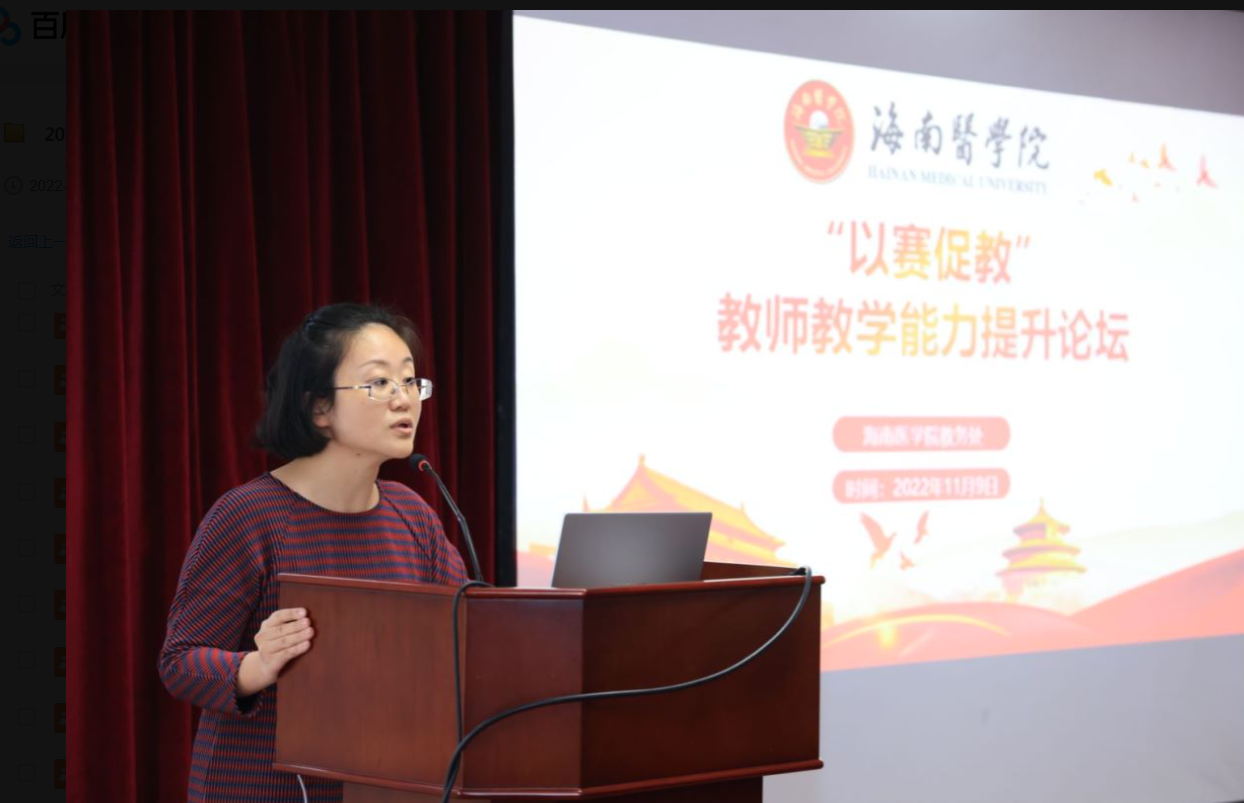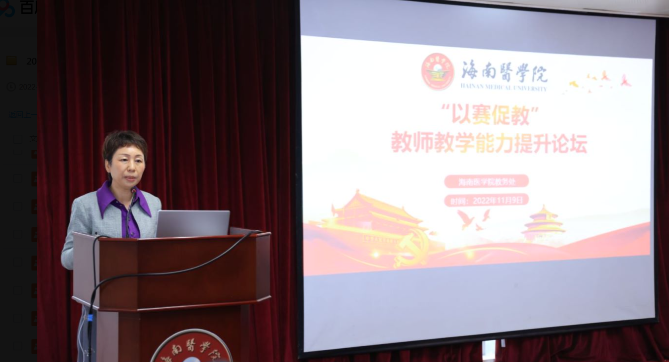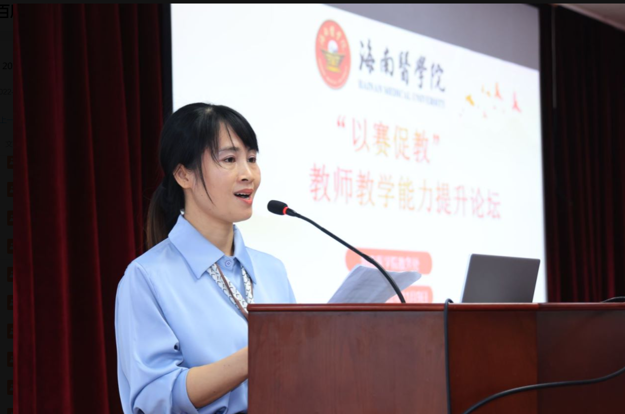 11月9日,2022-2023学年“以赛促教”教师教学能力提升论坛在海南医学院城西校区图书馆7楼报告厅举行。学校党委委员、副校长张彩虹出席论坛,教务处处长李其富,医学教育研究所主任周代锋,教师教学发展中心主任彭芸花,国际教育学院张万科书记,教务处副处长牛莉娜,医学教育研究所齐亚灵副主任,现代教育技术中心张经能副处长,专家评委组代表梁平教授、陈世民教授、林加论教授,各二级学院院长及获奖教师共100余人参加论坛。论坛由教务处李其富处长主持,采用线上和线下同步直播方式进行。