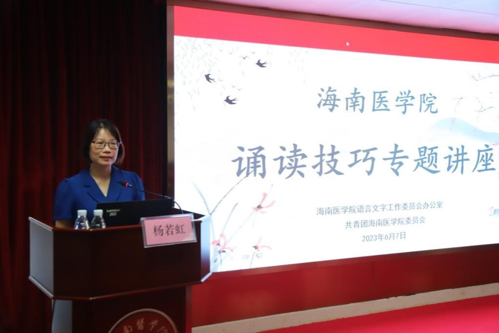 2023年6月7日上午,海南医学院语言文字工作委员会办公室与共青团海南医学院委员会在图书馆七楼学术报告厅举办语言文字专题讲座。讲座邀请了海南省语言文字评估专家、海南师范大学杨若虹副教授作了“诵读技巧”专题报告。讲座由教务处处长、语言文字工作委员会办公室主任李其富主持。taptap点点近150名师生代表参加了本次讲座,共同领悟诵读的精神与魅力。