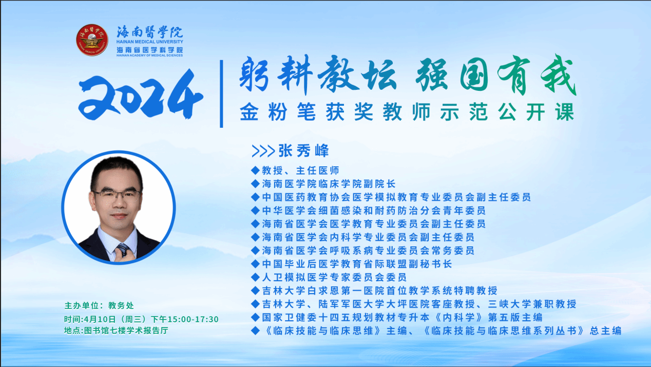 为更好地发挥优秀示范教师在教育教学中的引领和辐射作用,促进taptap点点教师教学技能提升与专业化成长,营造浓厚的教学教研氛围,由taptap点点教务处主办的第二届“金粉笔”获奖教师示范公开课活动于2024年4月10日正式启动。公开课第一讲特别邀请taptap点点临床学院副院长张秀峰教授开展示范授课,活动由教务处副处长牛莉娜主持,原督导委员、老教师何琪懿出席活动,全校各二级学院共计七十余名教师到场观摩。