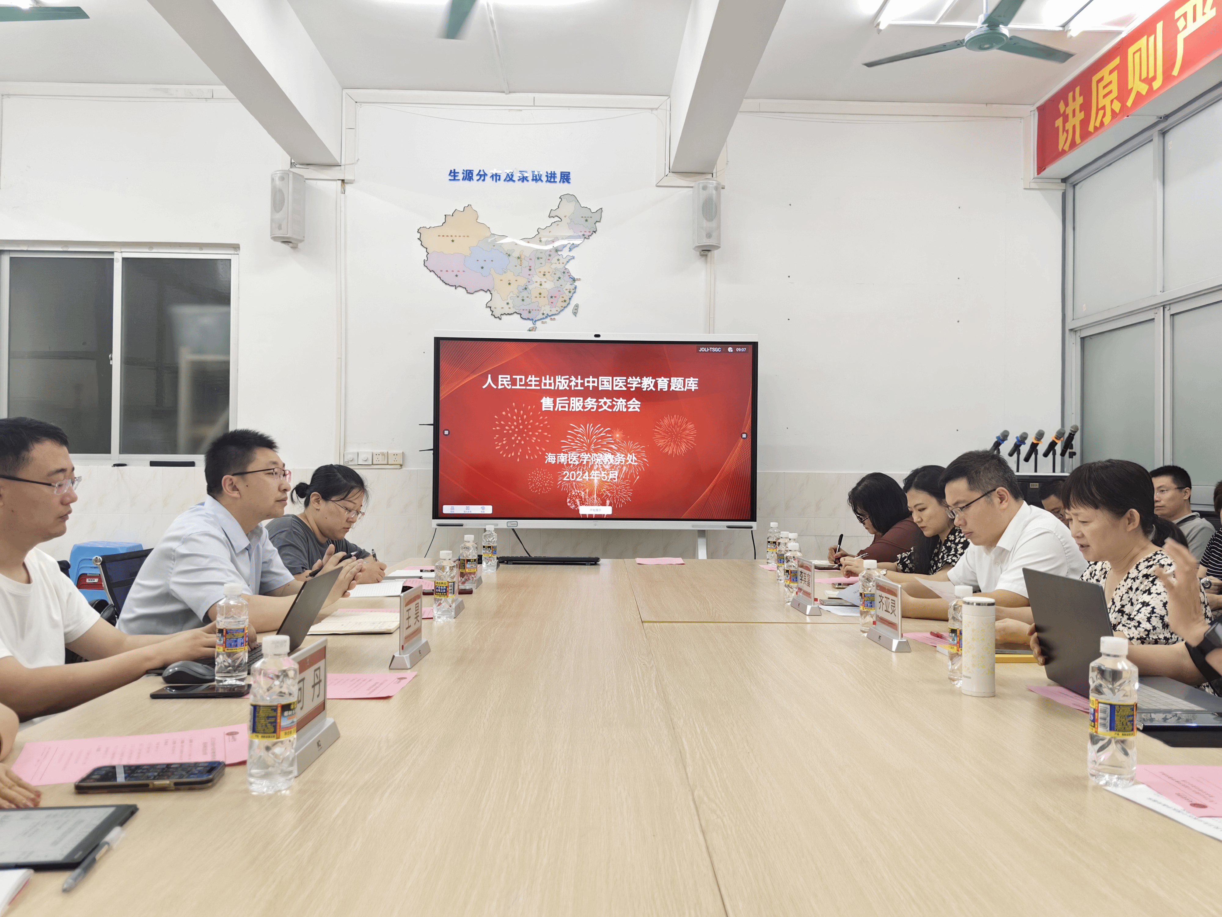 为加强taptap点点题库建设,提升教师命题能力。5月15日上午,教务处负责人邀请人民卫生出版社电子音像公司技术部姚念龙主任一行到校交流,会议由教务处李其富处长主持,齐亚灵副处长、考试管理科负责人员及各专业题库使用教师代表参加交流会。