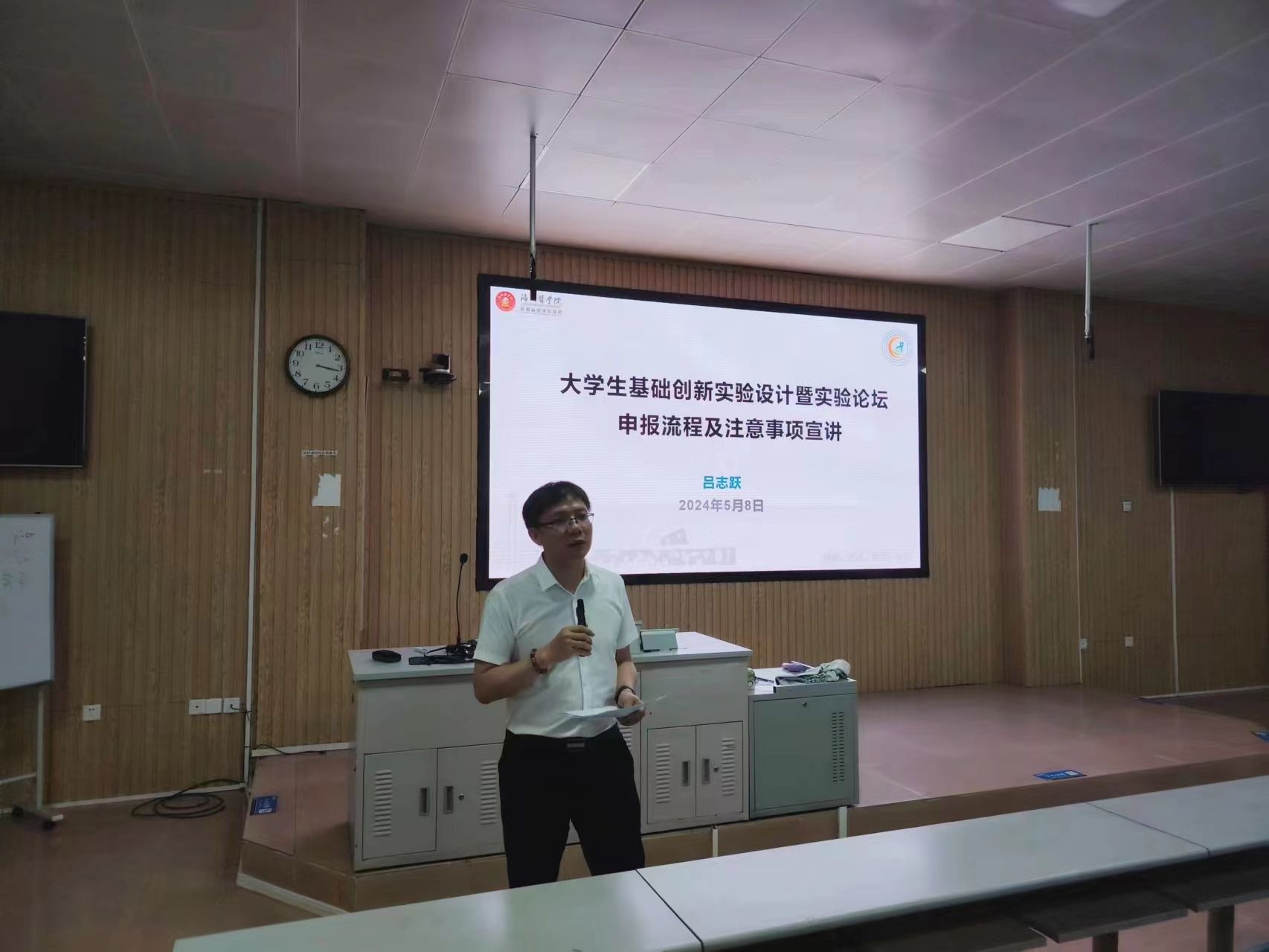 2024年5月8日下午,基础医学与生命科学学院邀请中山大学基础医学院吕志跃教授为海南医学院参加第十届全国大学生基础创新研究暨实验设计大赛的师生们举办了一场宣讲讲座。此次讲座旨在详细解读大赛的申报流程,强调注意事项,并为今年申报的16支队伍进行了专业细致的现场点评。基础学院杜冠魁副院长主持会议。