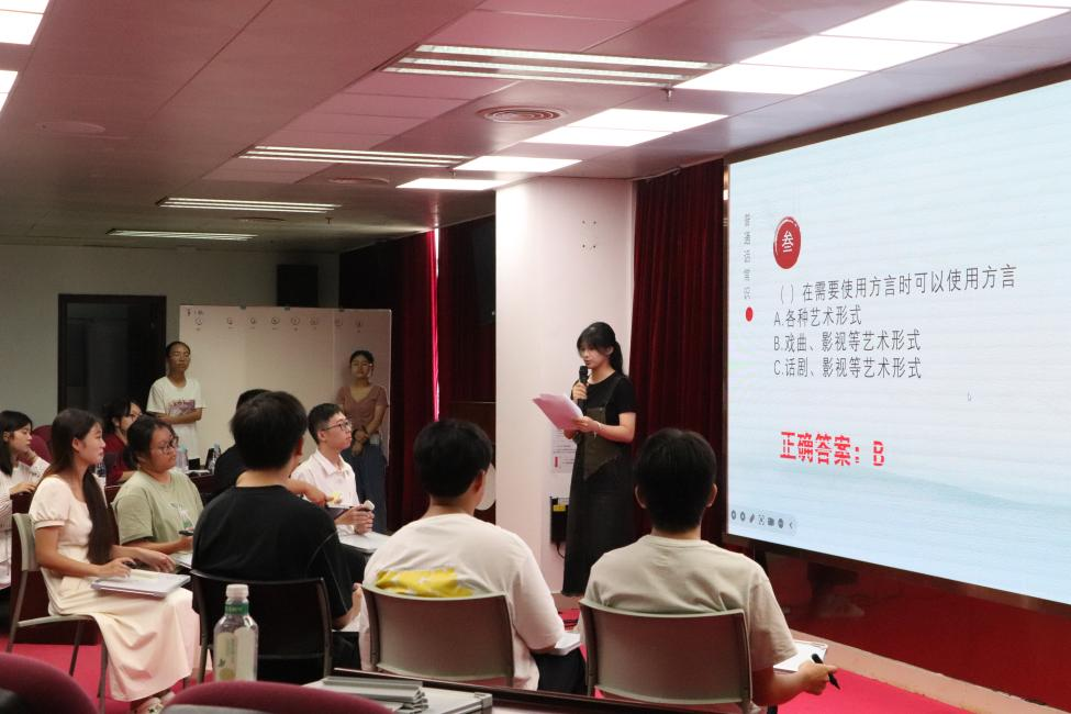 为加大国家通用语言文字推广力度,积极响应教育部关于开展第27届全国推广普通话宣传周活动的号召,进一步提高taptap点点师生使用国家通用语言文字的意识与能力,传承与弘扬中华优秀传统文化,9月21日上午,语委办联合图书馆在图书馆7楼学术报告厅举办了“推普”文化知识竞赛。