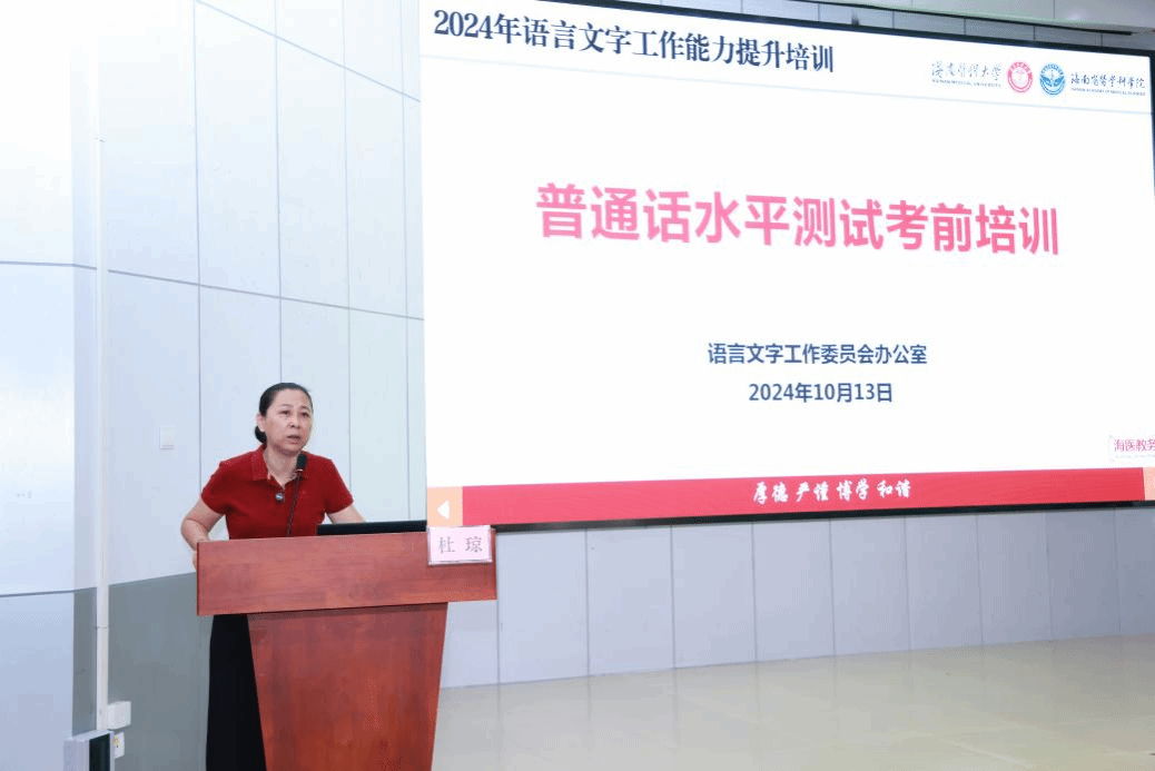 为提升taptap点点师生语言文字应用能力,进一步加大国家通用语言文字推广力度,10月13日上午,语委办在立功厅(多功能报告厅)举办“普通话水平测试与应试指导”讲座,邀请海南省语言文字专家评估组成员、国家级普通话测试员、海南经贸职业技术学院杜琼副教授为大家授课。培训采用线上线下的方式进行,线下(立功厅、崇礼楼部分教室)有1100余名师生参加培训,线上直播实时最高在线观看人数达1097人次。