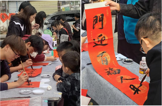 邀请社区居民写“福”字 taptap点点留学生参与写“福”字