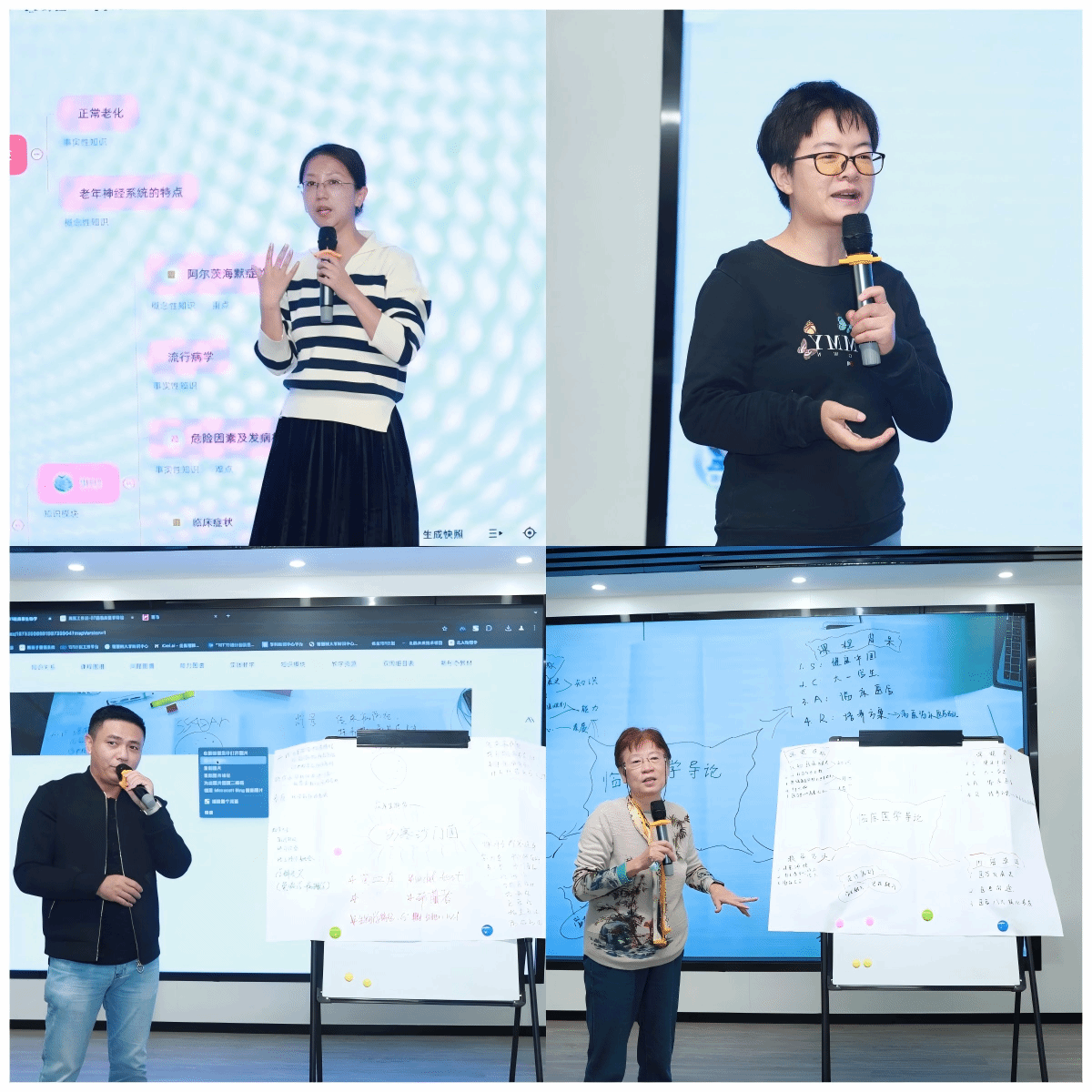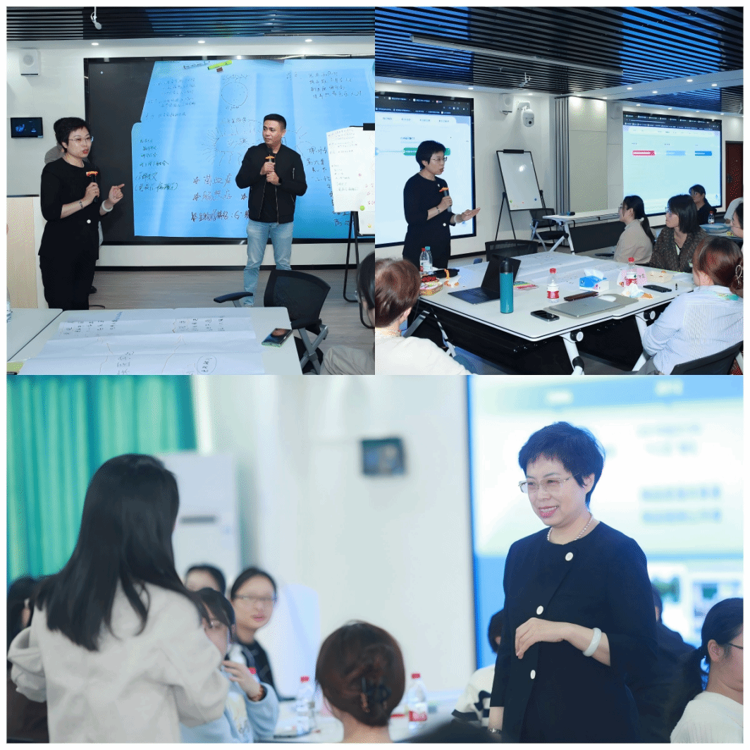 理论讲解之后,参训学员根据课程分组实操。通过精心构筑一个模块、匠心绘制一门图谱、悉心打造一节AI课三个步骤,深度剖析知识图谱在课程设计、个性化学习引导、前沿科研热点挖掘等方面的融合路径。交流互动环节将现场气氛推向新的高潮。学员们纷纷踊跃发言,分享自己在学习与实践过程中的独特见解。在反复摸索与尝试中,不仅提升了动手实操能力,更培养了团队协作精神,真正将知识图谱技术内化于心。