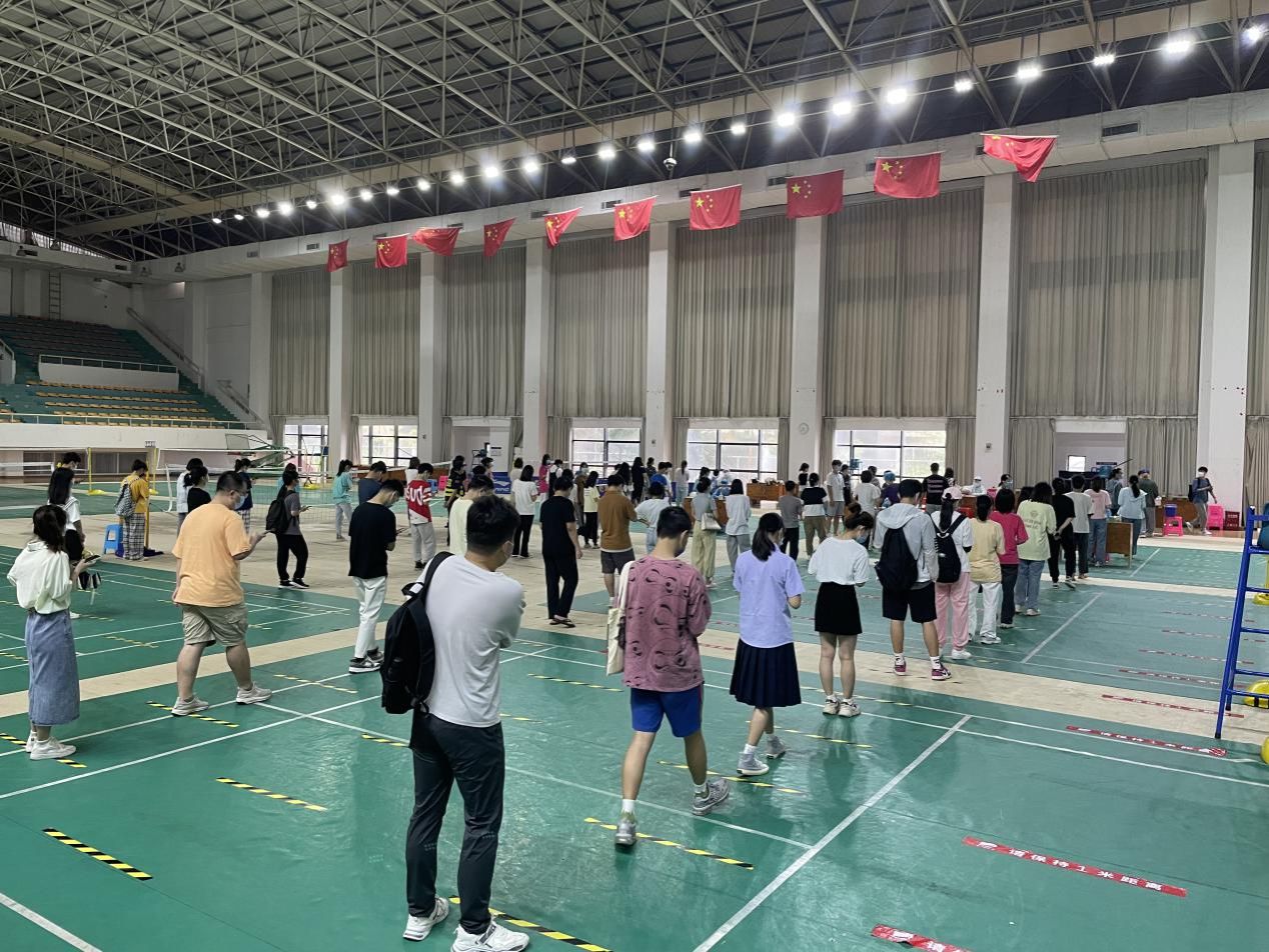 检测现场指挥得力,师生积极响应、服从安排,医护人员艰辛奋战、暖心服务,学生志愿者不畏辛劳、全力协助,检测工作有条不紊、安全有序顺利进行。