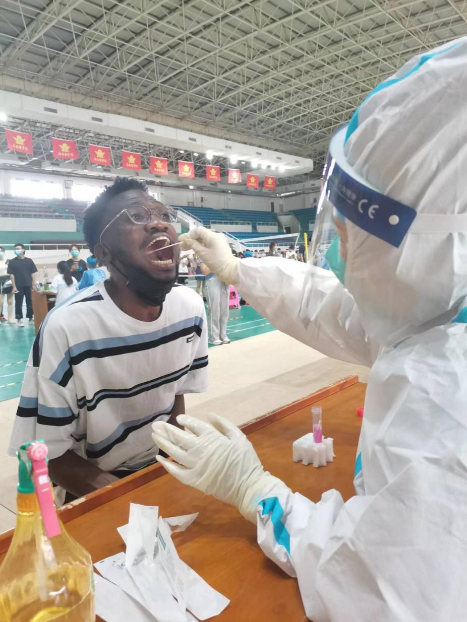 医护人员为见习学生进行核酸检测