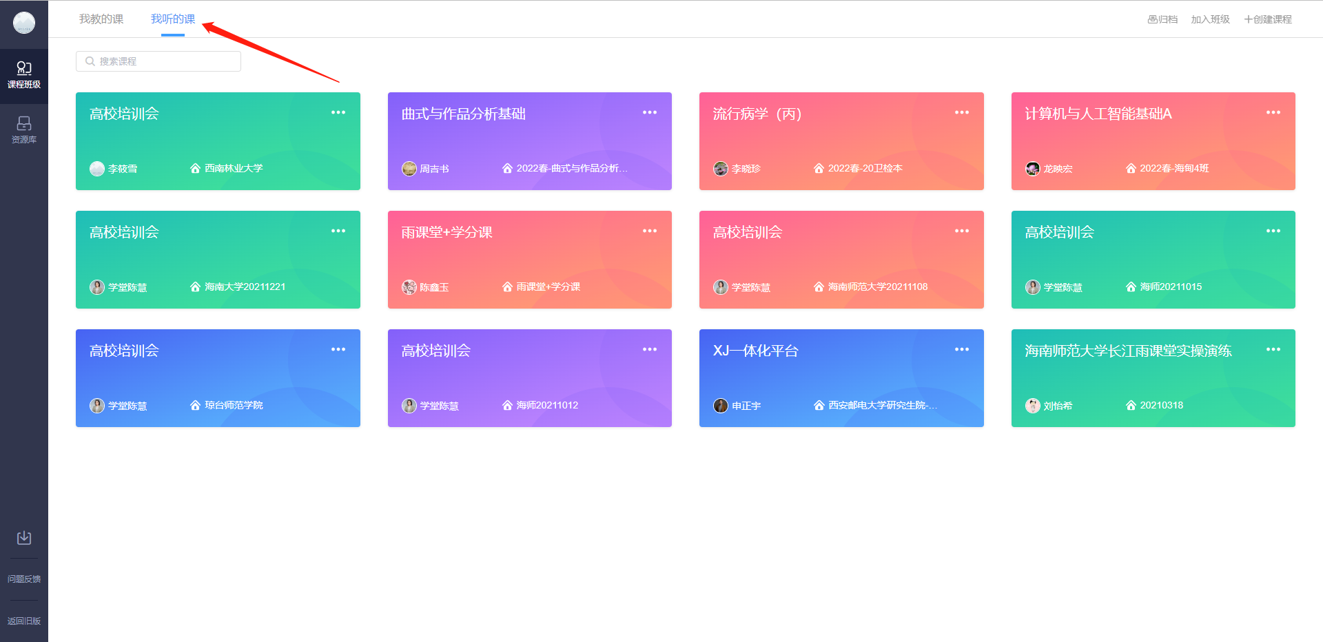 2:按箭头指引,选择我听的课程一栏下面,找到该课程即可电脑观看线上培训。