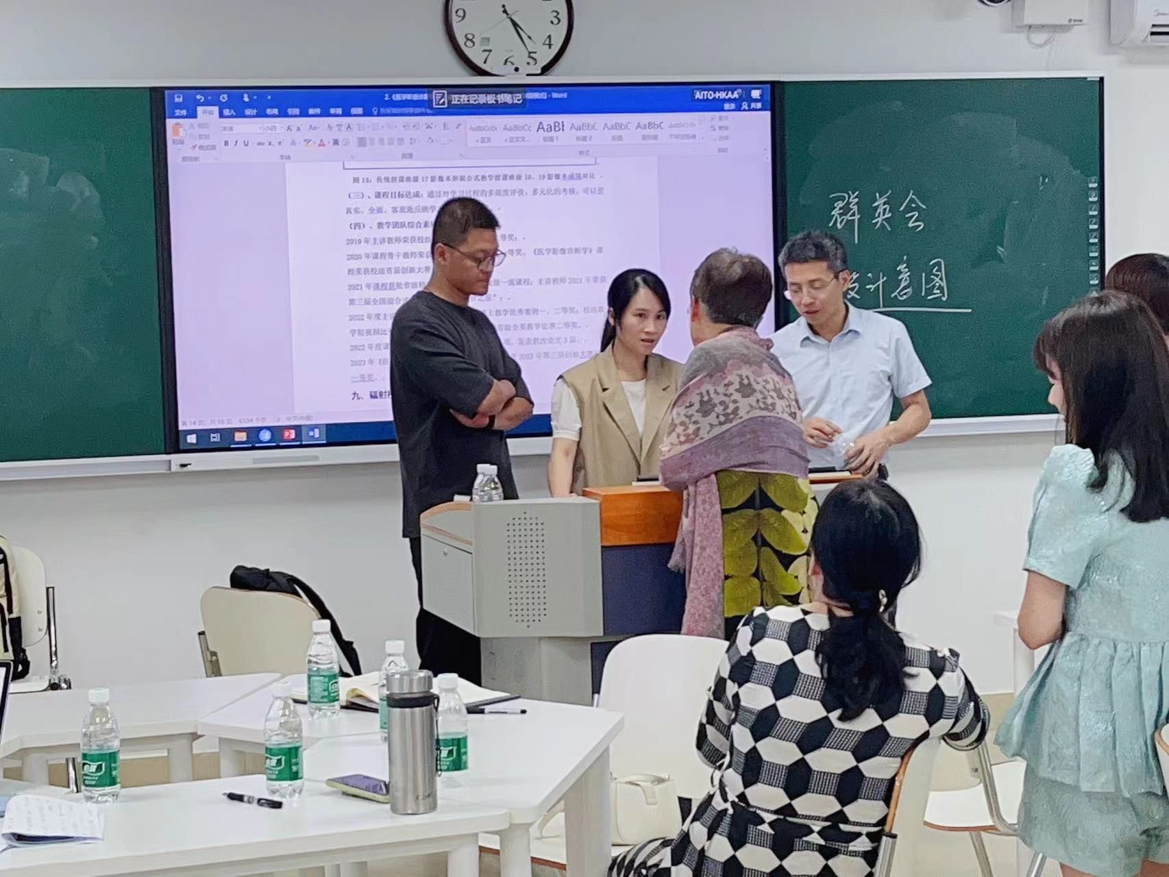 沈群教授结合自身早期的线上建课经验,着重从混合式教学课程发展历程、教学目标撰写、以兴趣为出发点的教学设计、课程教学改革组织与实施、课程效果评价等申报重点环节开展了小组互动式研讨,在充分展示案例的基础上,还对各门课程的申报书及教学设计进行了精心的指导。