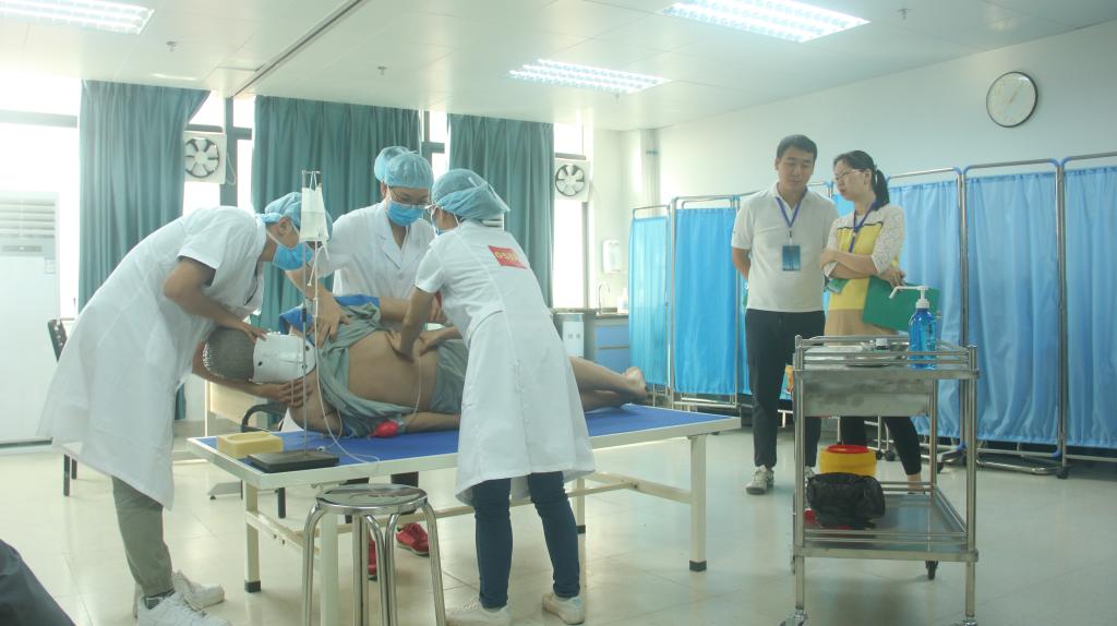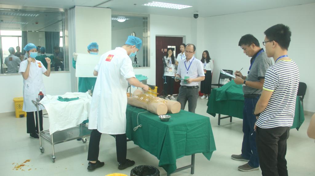 本次大赛共有七支参赛队伍,分别为解放军总医院第一附属医院、解放军总医院海南医院、中山大学附属第一医院东院、taptap点点一附院、taptap点点二附院、附属海南医院、海口市人民医院等7家医院海南医学院临床医学专业本科实习生代表队。大赛分为初赛、决赛两部分,均设7个站点,分别进行内科四大穿刺,外科消毒铺巾、切开缝合,妇、产科检查,儿科小儿生长发育评定、心肺复苏、急诊、护理等技能操作。谢协驹教授、张建中教授担任本次大赛裁判长。