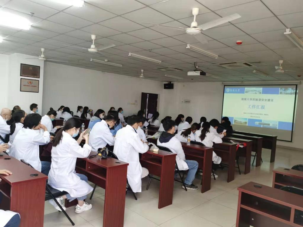 到达海南大学后首先由海南大学实验室与设备处刘艳凤副处长为到场的人员做了“海南大学实验室安全建设工作汇报”和 “实验室安全报告”专场讲座,在座的老师们都收获颇丰。紧接着现场人员分为四组,分别实地参观走访了危化品暂存间和危废暂存库、李运强楼化学工程与技术实验室、分析测试中心实验室,参观结束后与对口单位的人员进行了交流座谈。