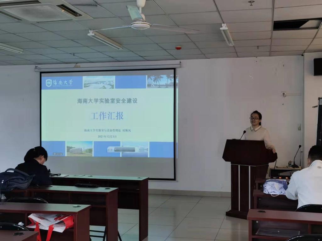 为了规范和加强学校教学实验室的安全管理工作,增进校际交流,学习兄弟院校在高水平实验室安全管理及建设等方面的先进经验, 12月3日,由教务处熊燏副处长带队,国资处相关人员、教学实验室、科研实验室等相关人员赴海南大学实验室与设备管理处进行交流学习。
