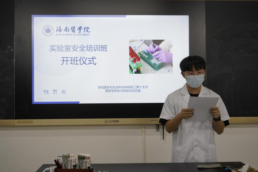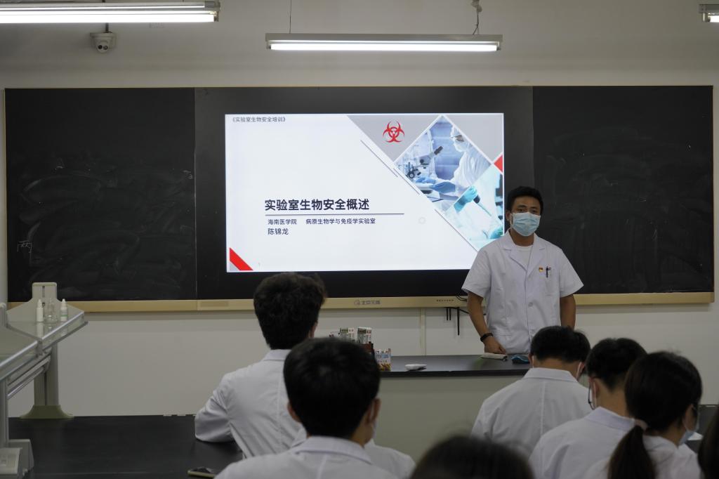 2022年3月28日下午,依教务处《关于组织开展 2022 年海南医学院 “教学实验室安全活动月”的通知》的文件精神,基础医学与生命科学学院教工第十支部联合病原生物学与免疫学实验室在病原生物学与免疫学实验室面向在用或拟用病原生物学与免疫学实验室的学生举办了实验室安全培训活动。学校教务处副处长熊燏、基础医学与生命科学学院副院长莫燕娜、病原生物学与免疫学实验室、病原生物学教研室教师等出席开班仪式。