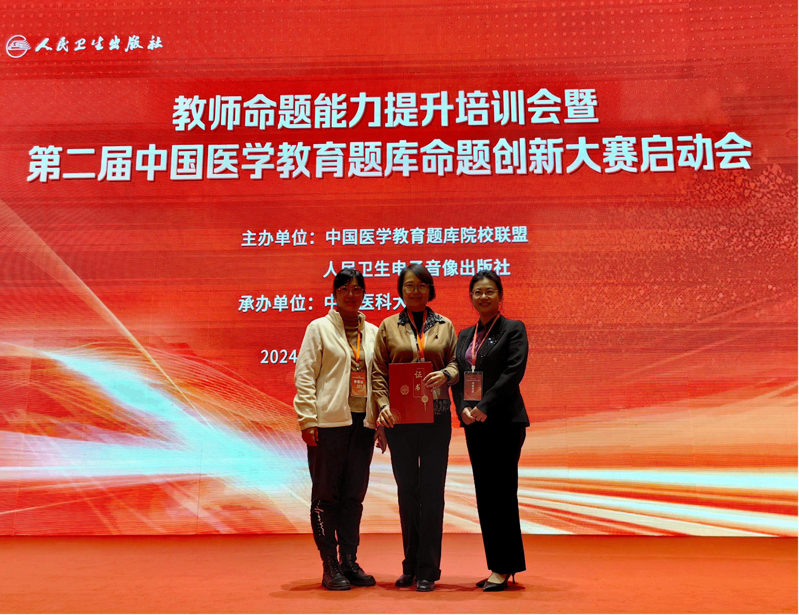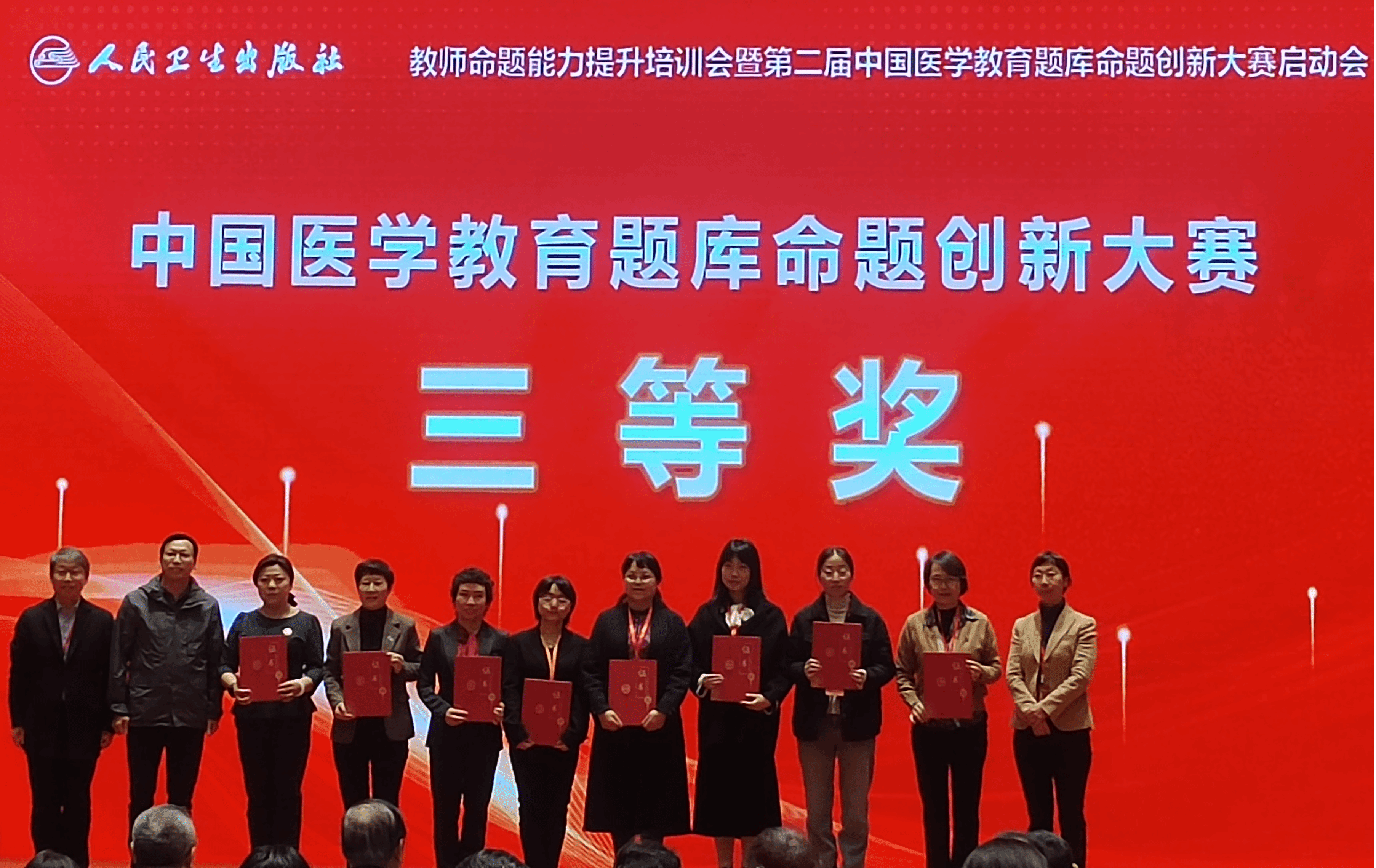 大赛共有全国16个省(自治区、直辖市)34所院校,126个团队,549名教师参与大赛报名,在曾敏副校长带领下,经过网络初赛、现场评审等多轮角逐,基础医学与生命科学学院生理学教研室董战玲教学团队(张彩彩、翁启芳、焦瀚仪、李冬洋等)凭借扎实的医学知识和出色的命题能力,在众多参赛队伍中脱颖而出,荣获三等奖。教务处齐亚灵副处长、李玉龙老师从备赛到现场赛持续关注与指导,生理学教学团队以临床实际为背景,注重题目的实用性和针对性,巧妙融入医学学科间交叉融合的内容,创新命题思路,设计了有启发性、创新性和实用性的考试试题。