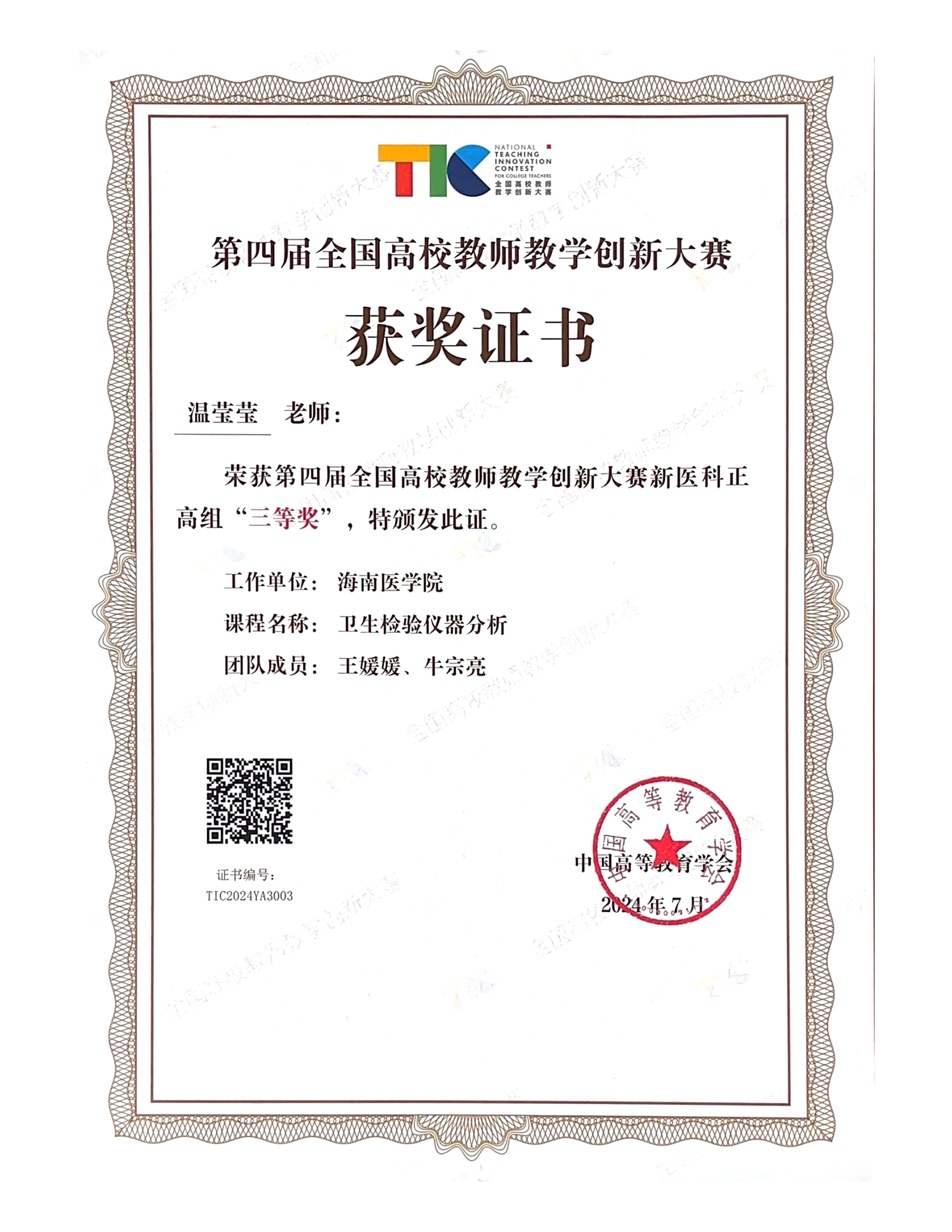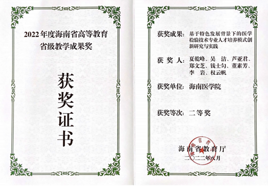 海南省高等教育省级教学成果二等奖