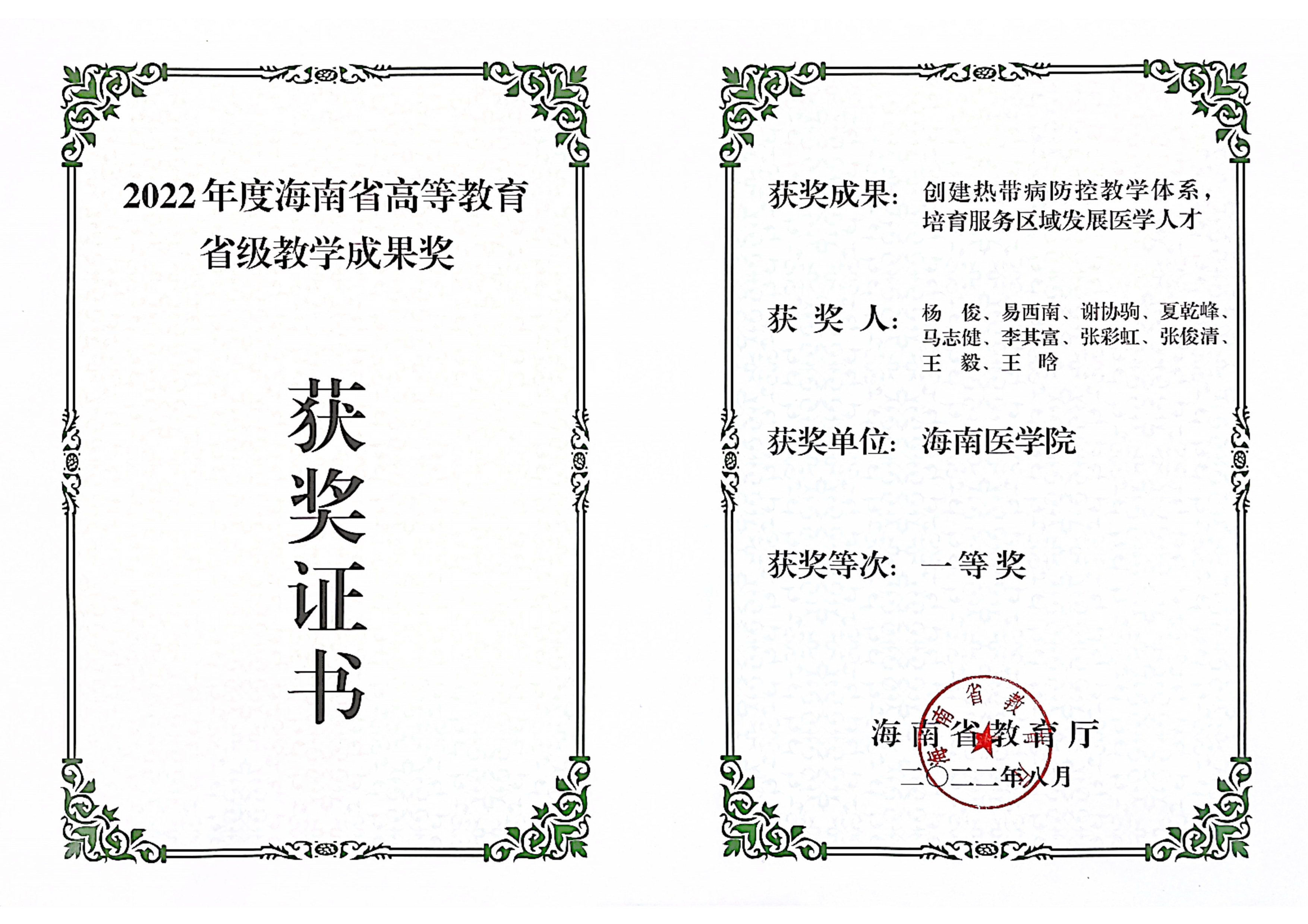 海南省高等教育省级教学成果一等奖