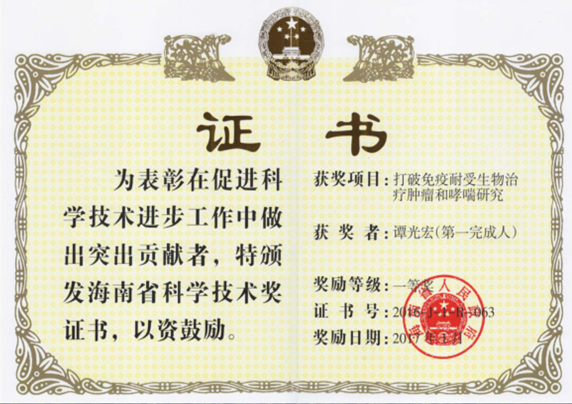 海南省科学技术奖一等奖