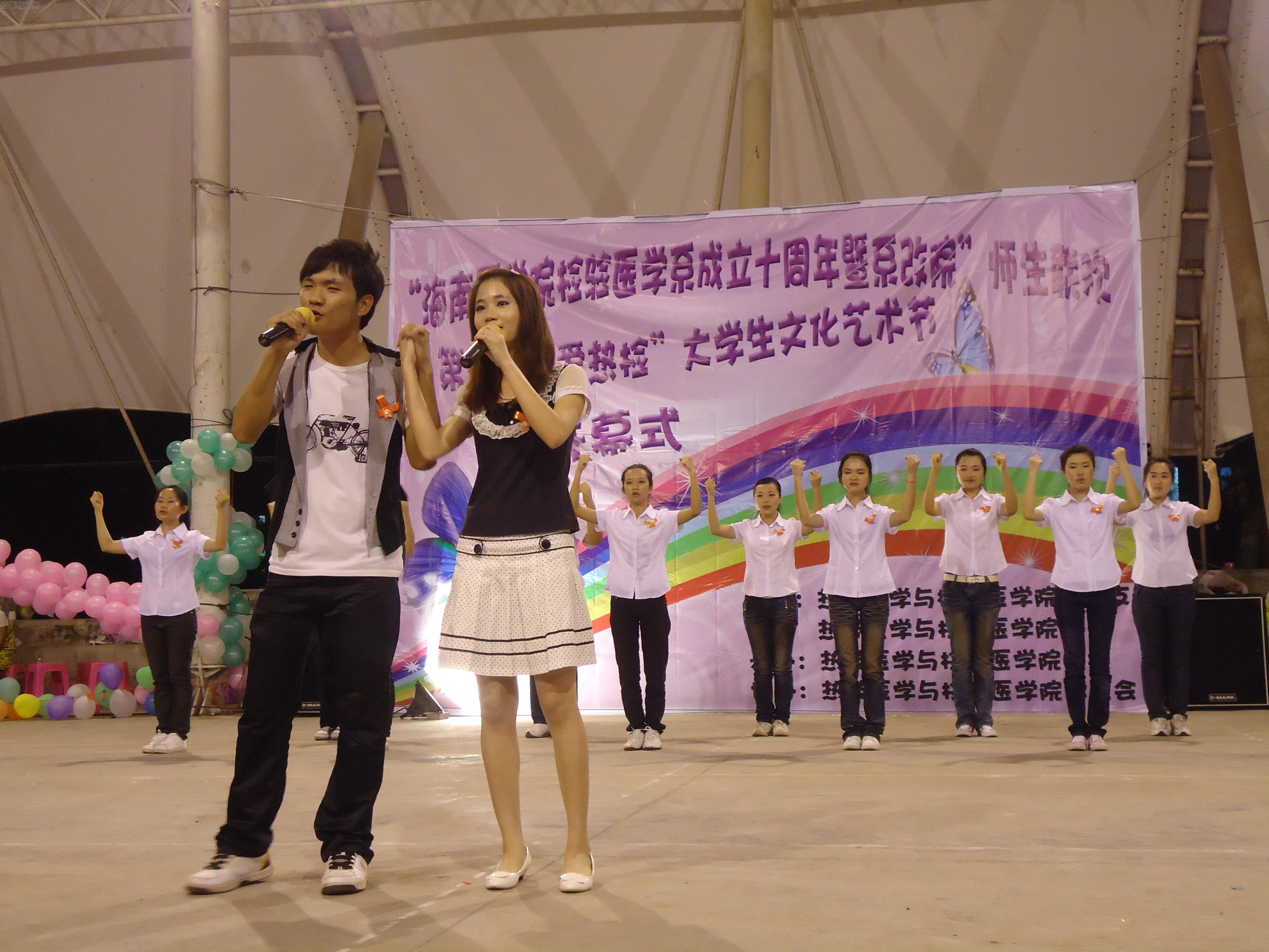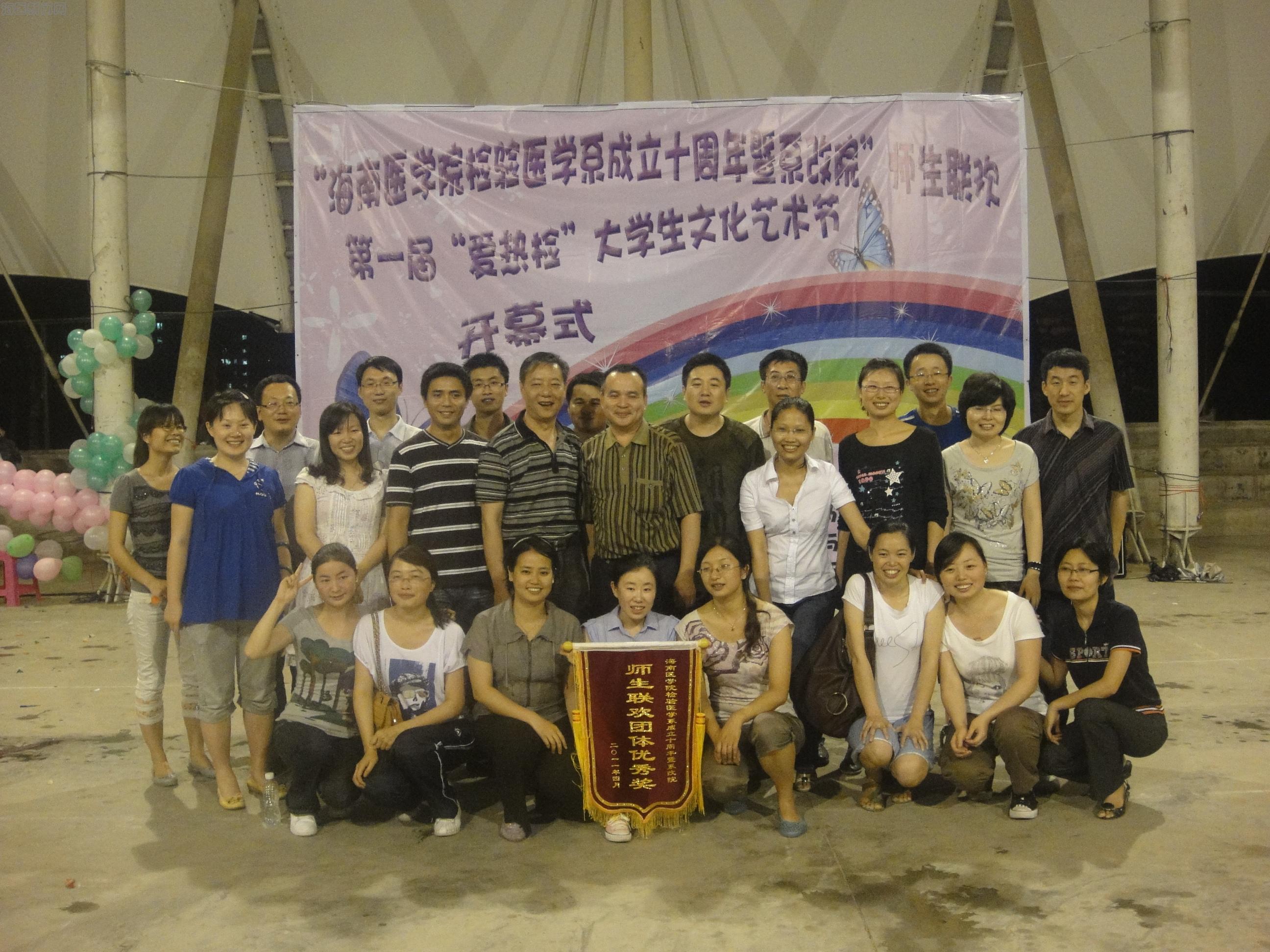 为进一步增强我院凝聚力,增进师生交流沟通,深化校园文化建设,活跃大学文化气氛,丰富同学们的精神文化生活,我院于2011年4月28日晚19:30在城西校区风雨操场成功举办了“海南医学院检验医学系成立十周年暨系改院”师生联欢活动暨第一届“爱热检”大学生文化艺术节开幕式。我院钱士匀院长、刘启昌书记、吕刚副院长、傅琼瑶副书记及各教研室、实验室的全体教师均参加活动。